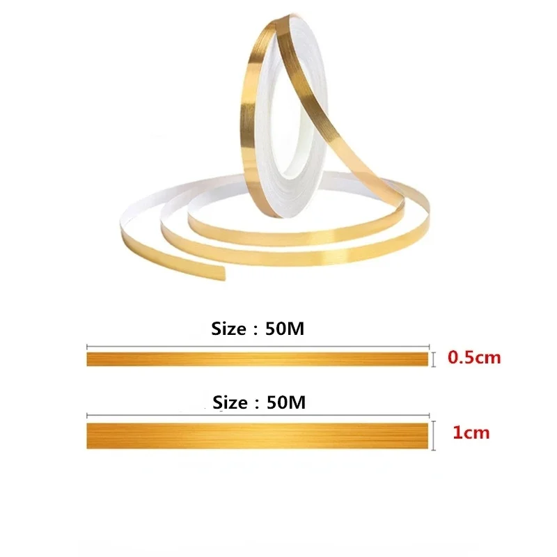 Popxstar 50M Brushed Gold Silver Floor Edging Waterproof Seam Wall Stickers Wall Gap Ceiling Home Decoration Self-adhesive Tile Tape