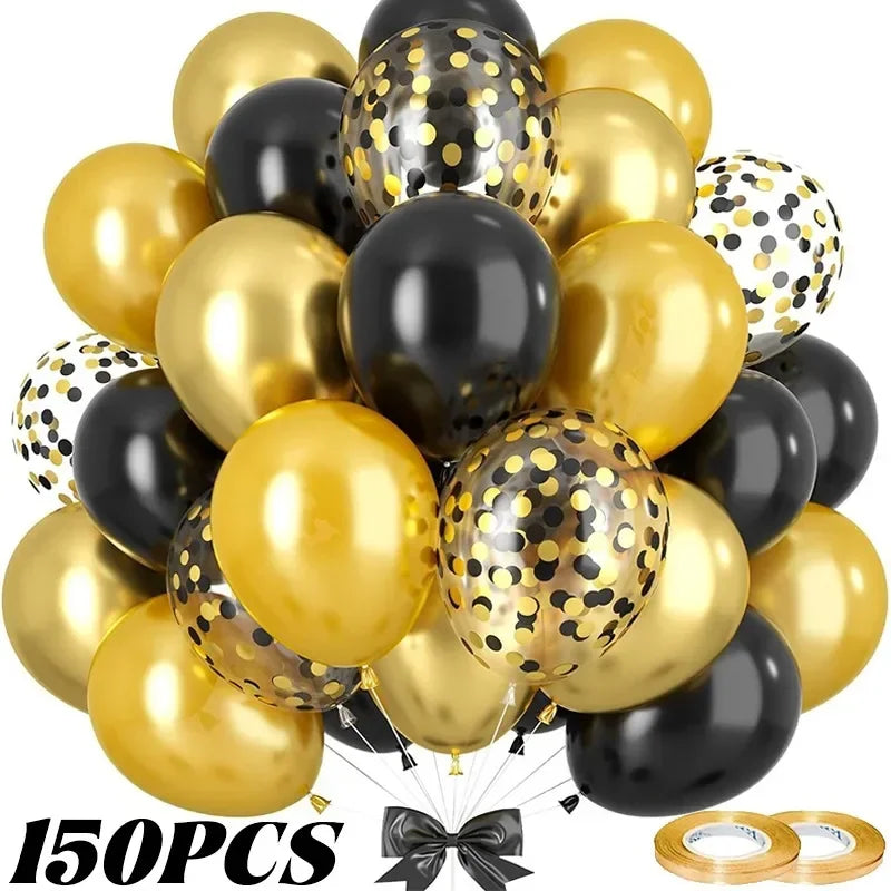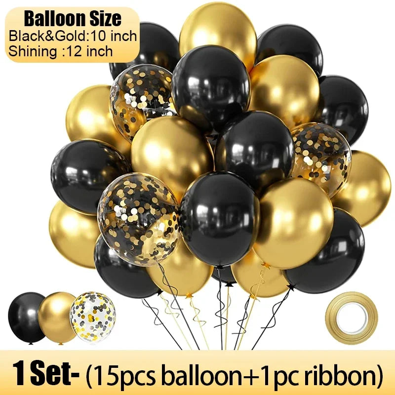 Popxstar Wholesale Latex Balloons Shiny Sequin Black and Gold Inflatable Balloon for Wedding Party Birthday Christmas Home Decor Supplies