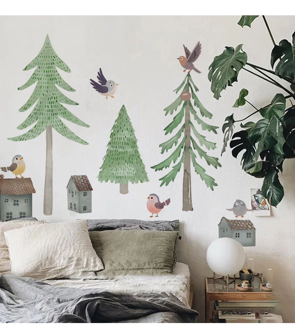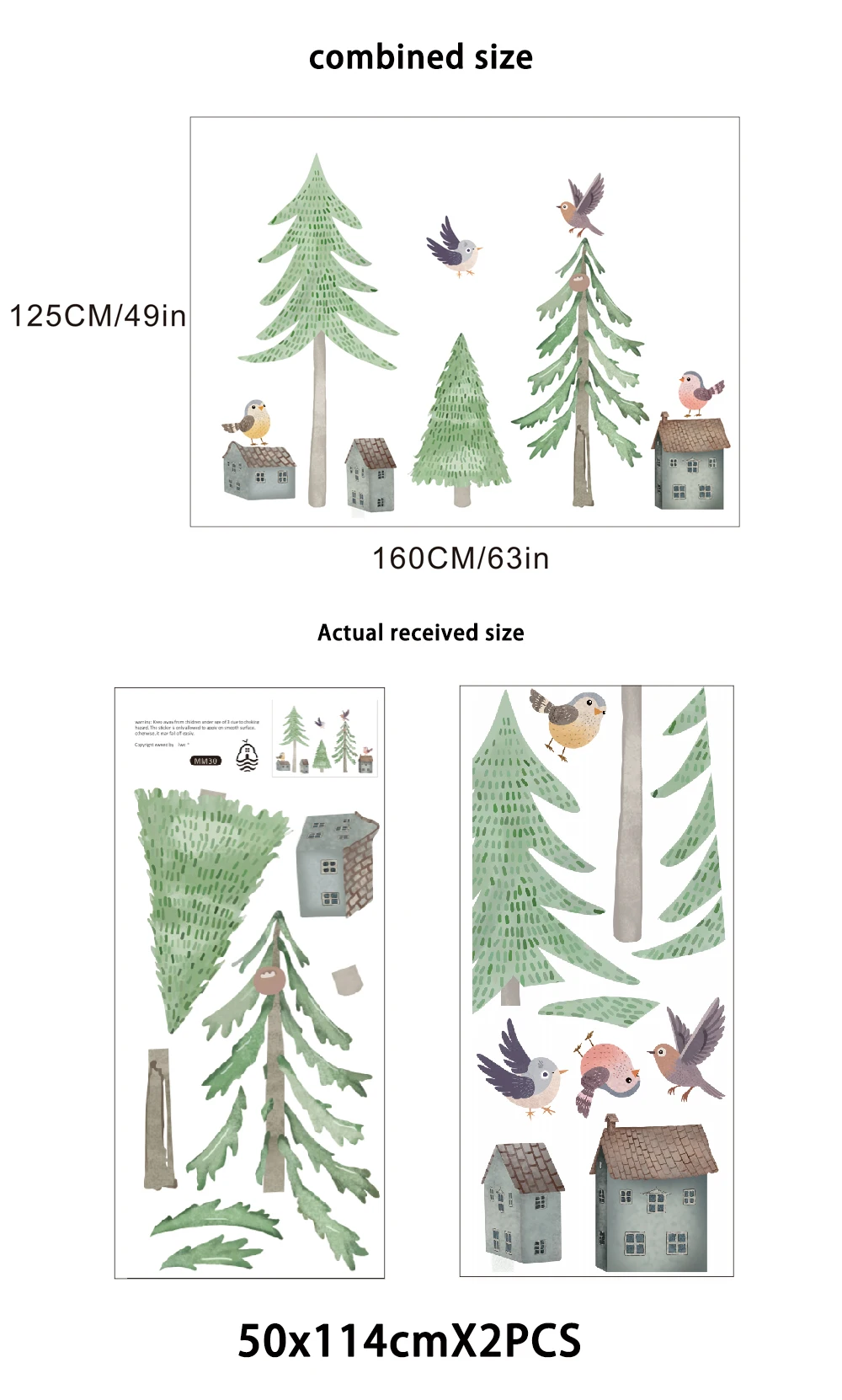 Popxstar Large Fresh Forest Tree Wall Stickers Self-adhesive Paper Bedroom Home Decor Living Room Background Wall Porch Decoration