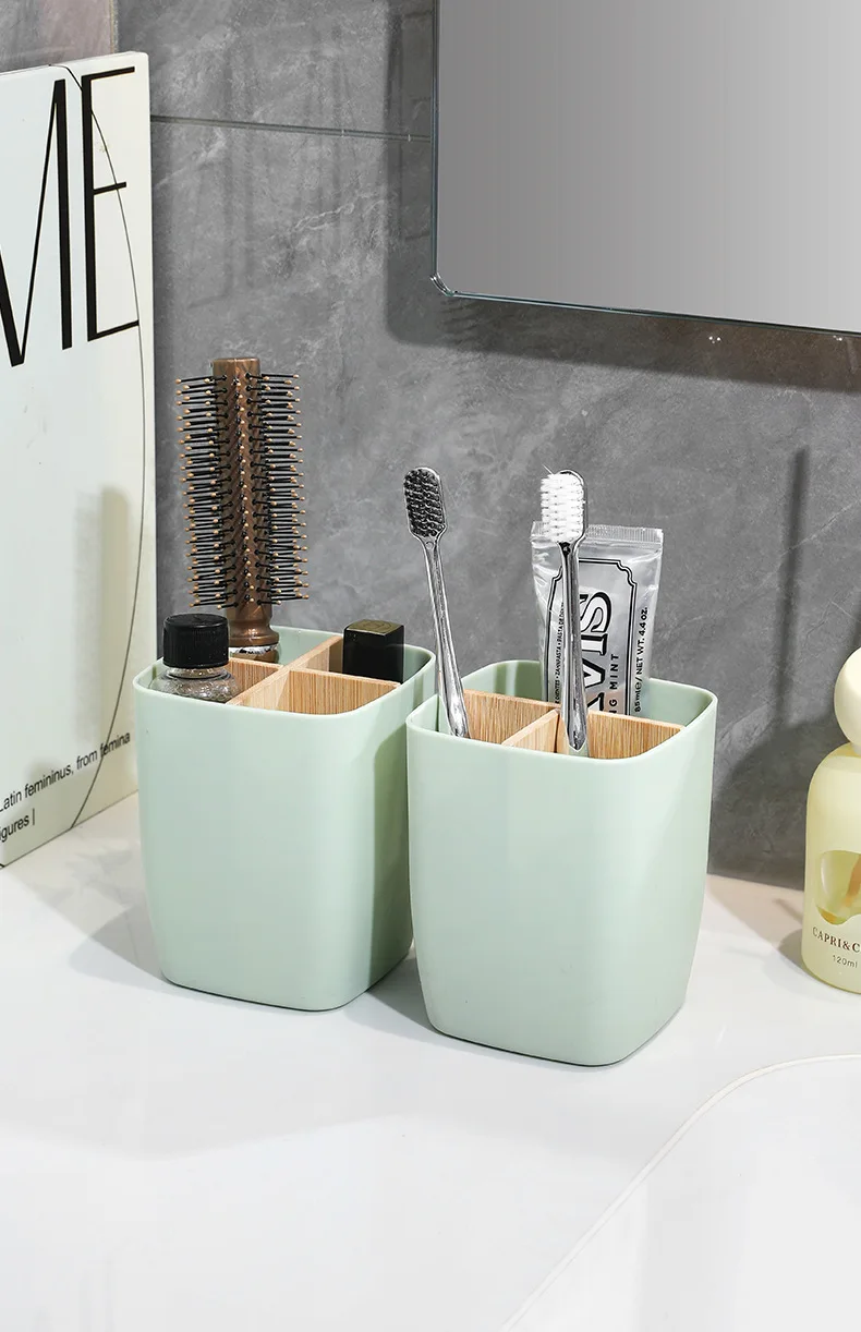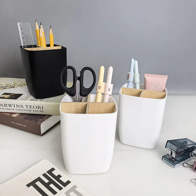 Popxstar 2pcs Bamboo-Like Plastic Desk Organizer with Pen Holder & Jewelry Storage - 3/4 Compartment Standalone Multi-Purpose Box