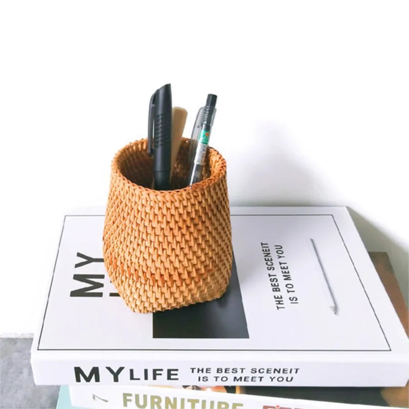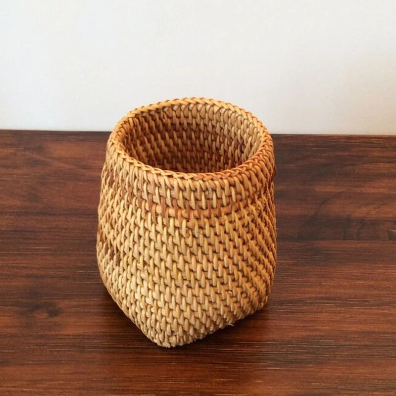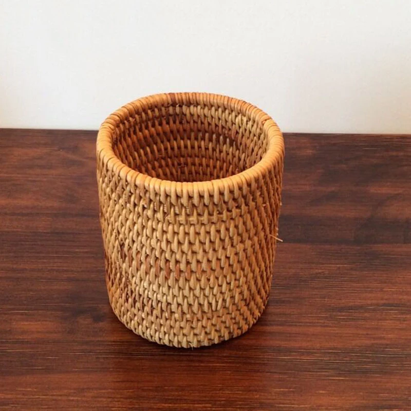 Popxstar High Quality Hand-made Rattan Storage Box Pen Container Makeup Brush Storage Box Tea Ceremony Accessories storage baskets