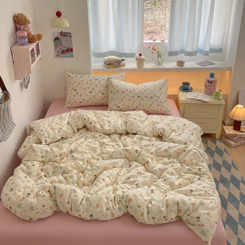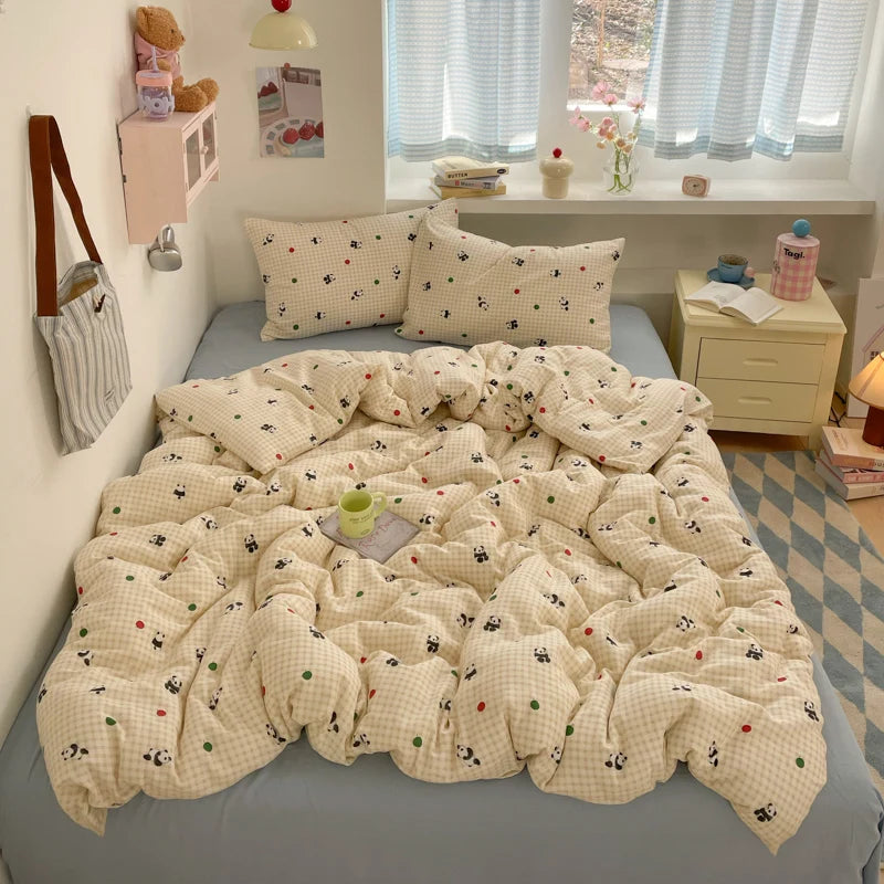 Popxstar 100% Cotton Bedding Set Cartoon Cute Animals Duvet Cover Set Bed Linen Flat Sheets Set 2 Pillowcases Single Double Queen Size