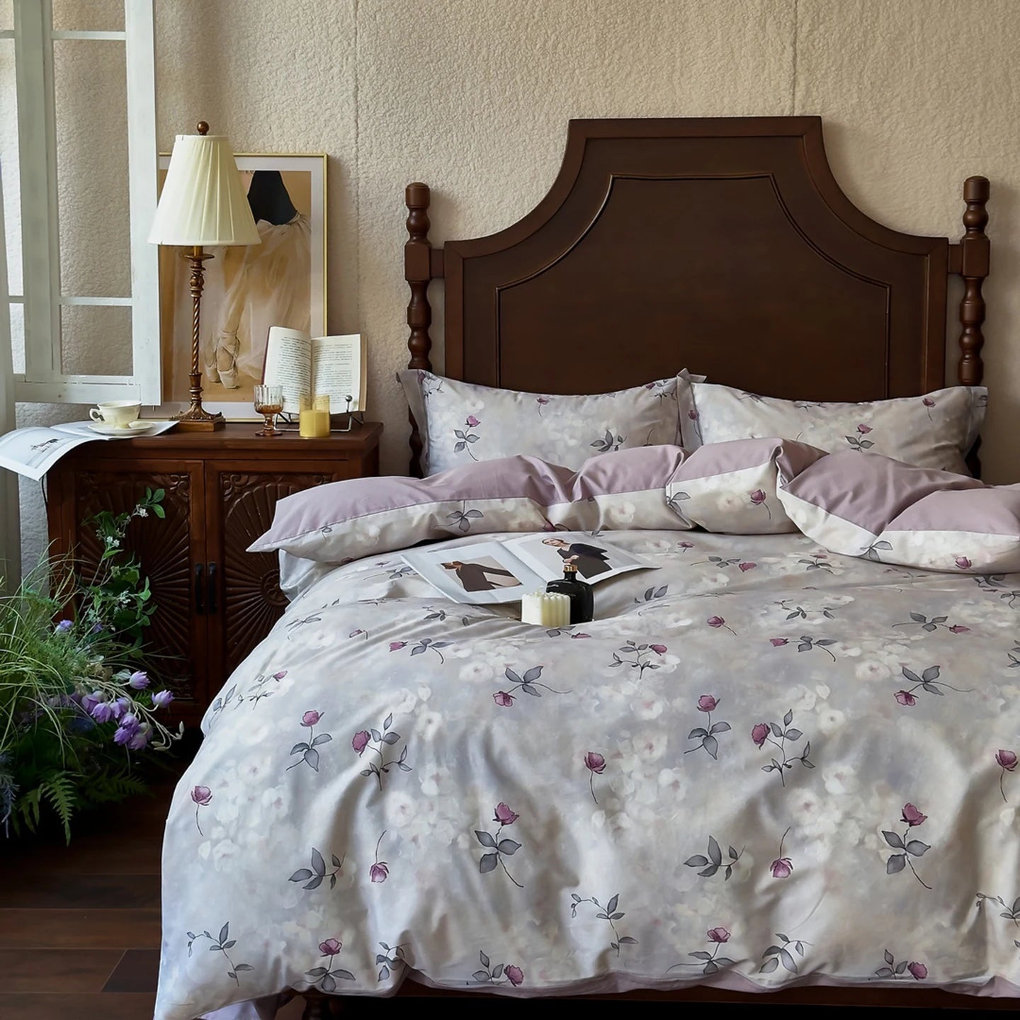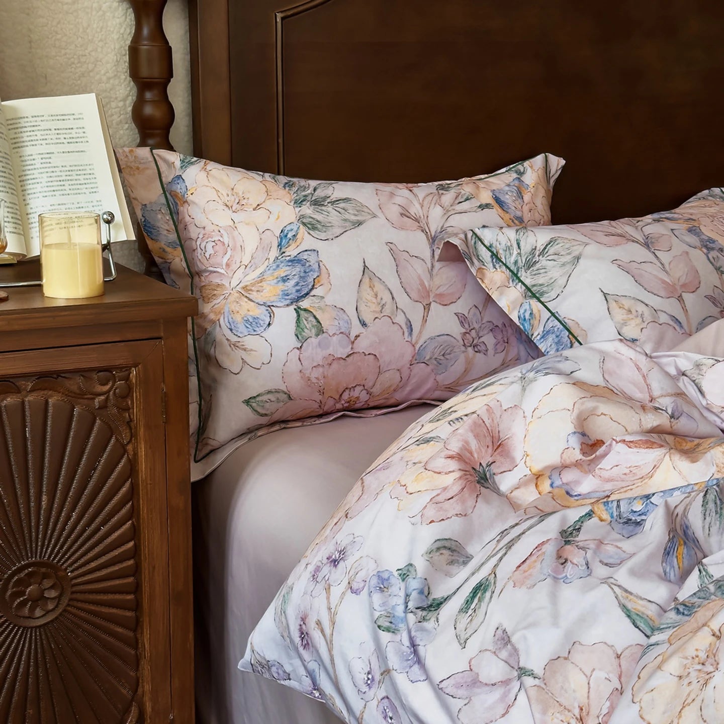 Popxstar 100% Cotton Bedding Set Ins Korean Floral 3D Printed Duvet Cover Bed Linen Flat Sheets Set 2 Pillowcases Twin Double Queen Size