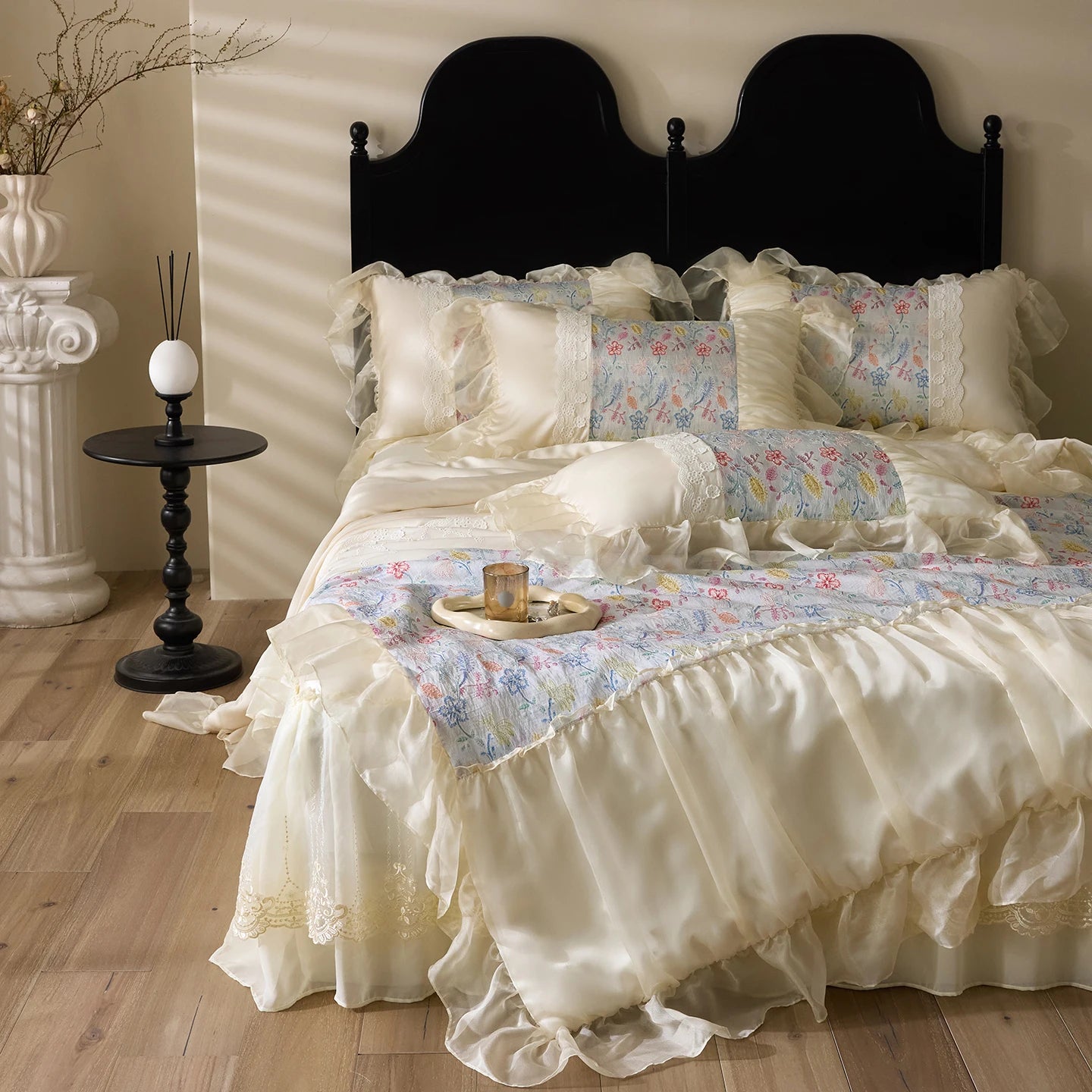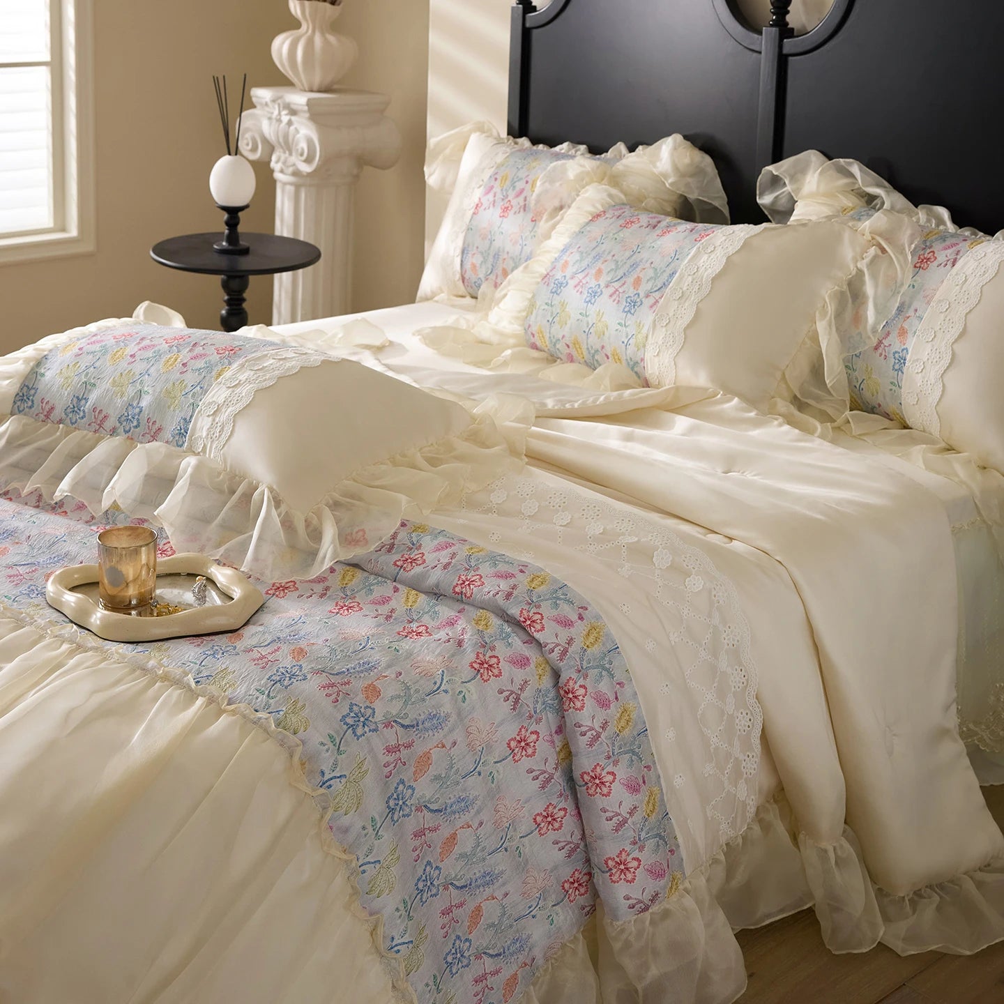 Popxstar 100% Long-Staple Cotton Bedding Set Gorgeous Floral Romantic Skirt Bed Sheet Set Pillowcase Queen King Double Size Bed Linen Set