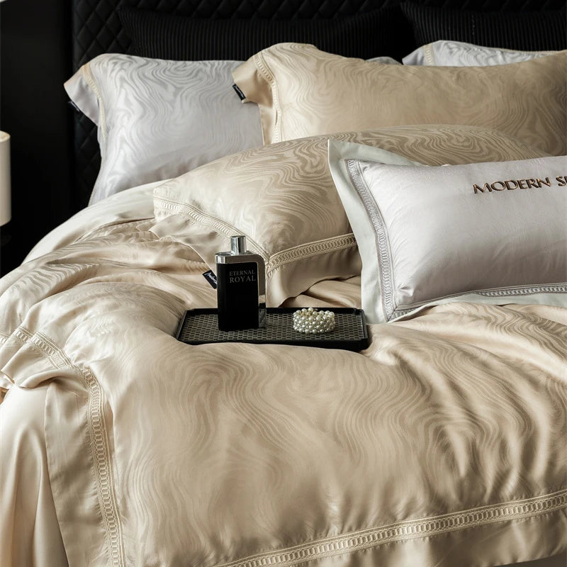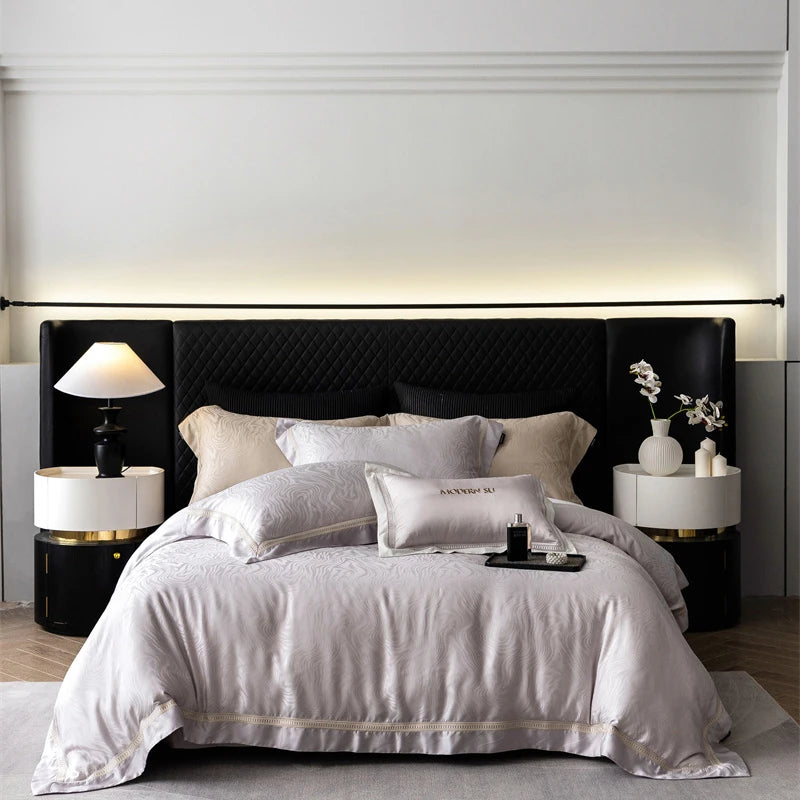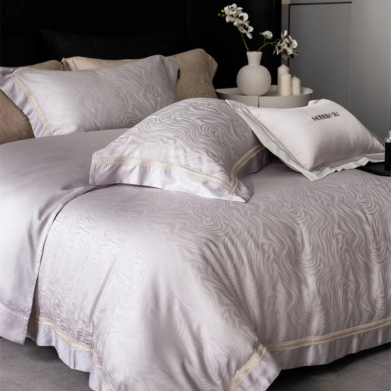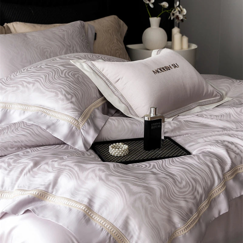 Popxstar 1000TC Egyptian Cotton Soft Silky Jacquard Embroidery Luxury Bedding Set Duvet Cover Flat/Fitted Bed Sheet Pillowcases 4Pcs