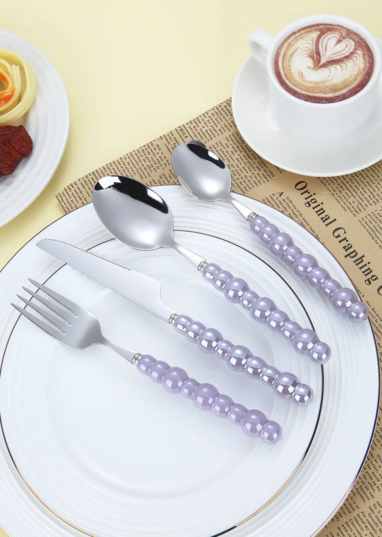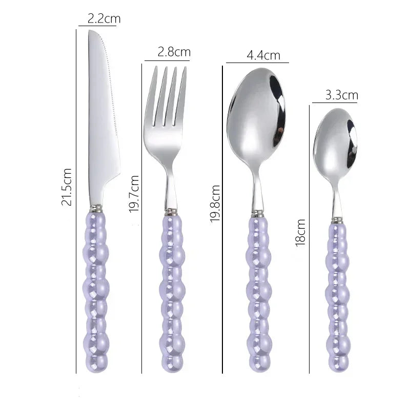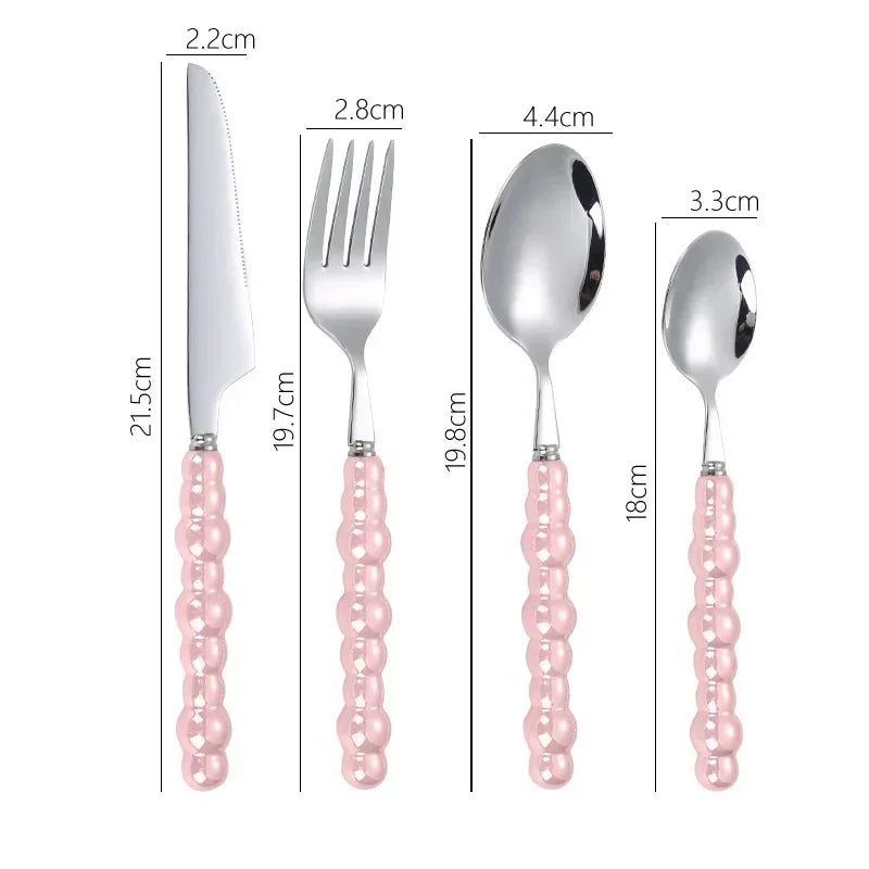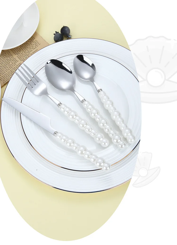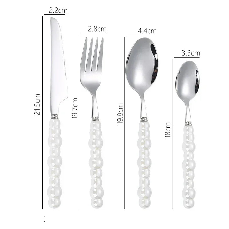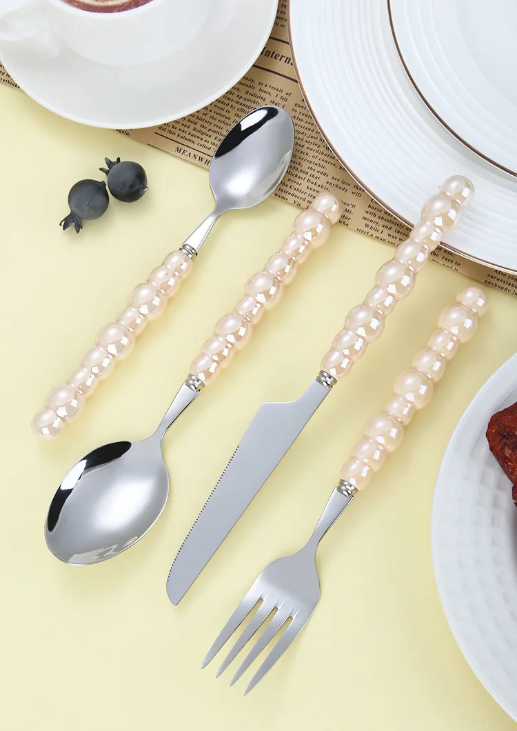 Popxstar 4Pcs/Set Luxury Ceramic Pearl Handle Cutlery Set Knife Fork Spoon Creative Cute Soup Spoon Western Food Steak Knife Spoon Fork
