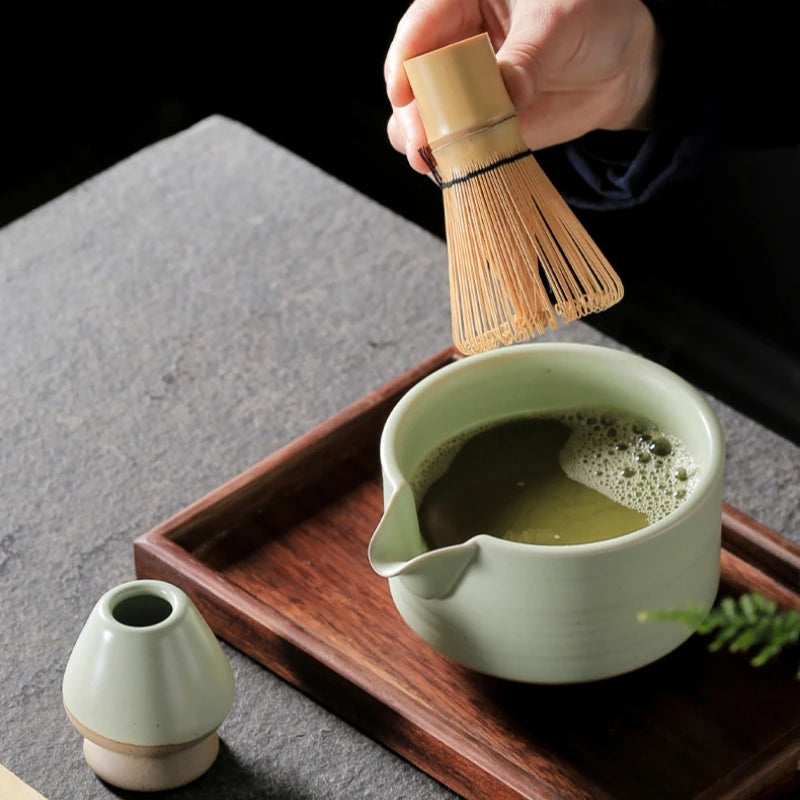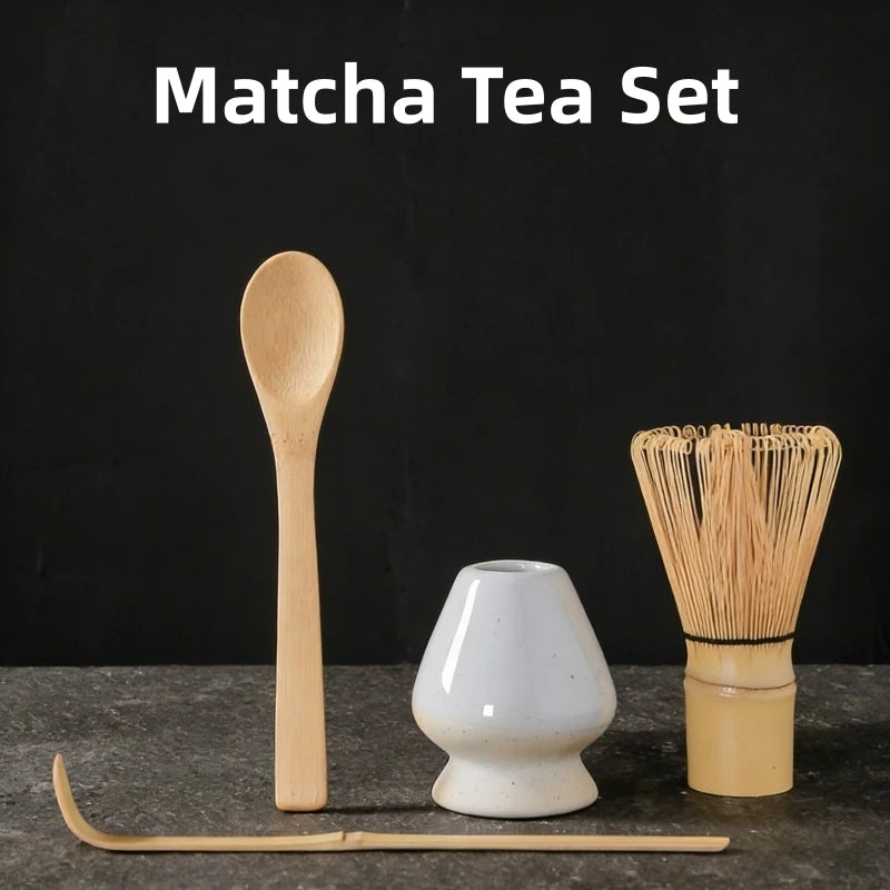Popxstar 4pcs/Set Traditional Matcha Starter Set, Bamboo Whisk (Chasen), Scoop (Chashaku), Chasen Stand, Basic Matcha Tea Making Kit
