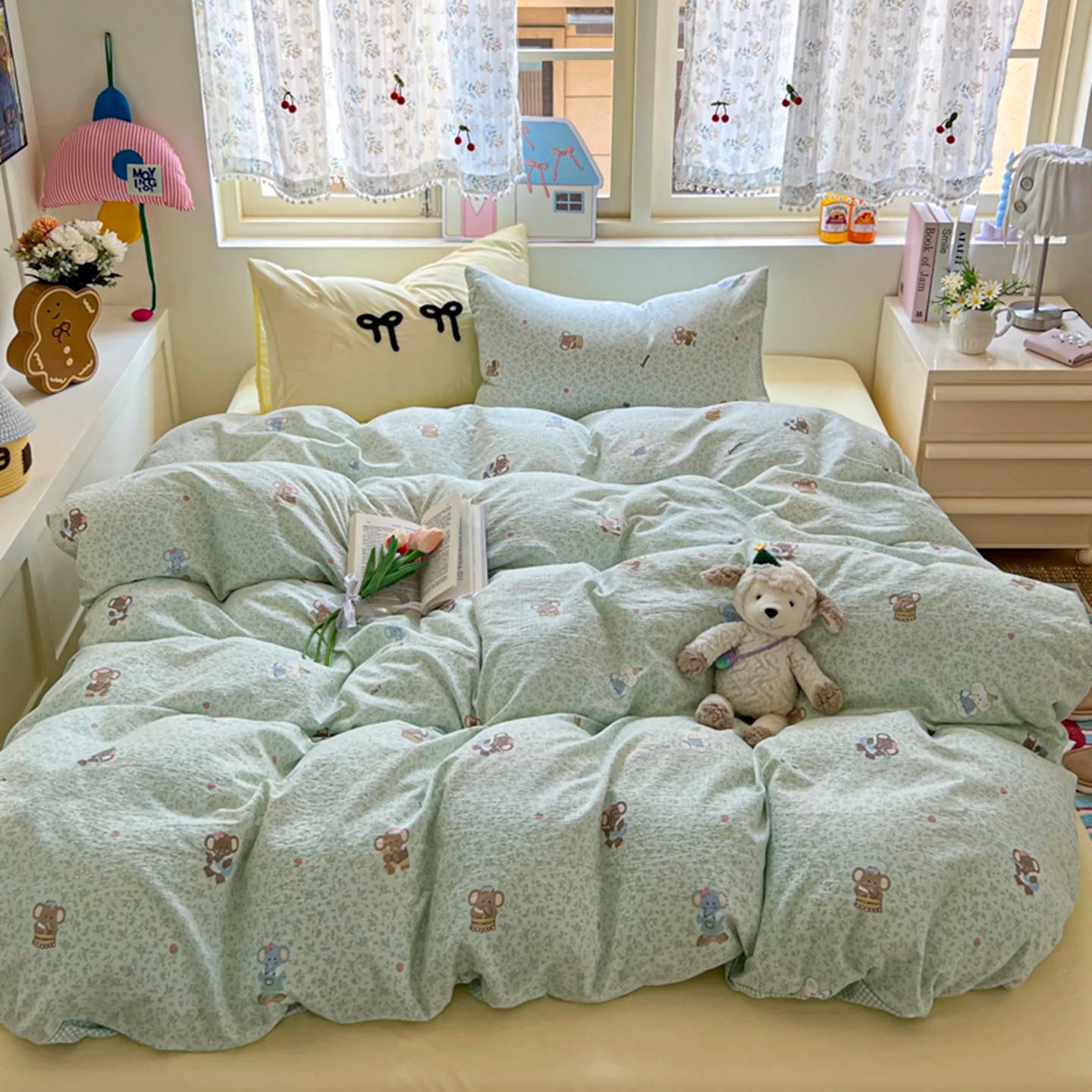 Popxstar Cartoon Bedding Set Ins Korean Towel Embroidery Bed Linen Flat Sheets Set 2 Pillowcases Twin Double Queen Size Duvet Cover Set