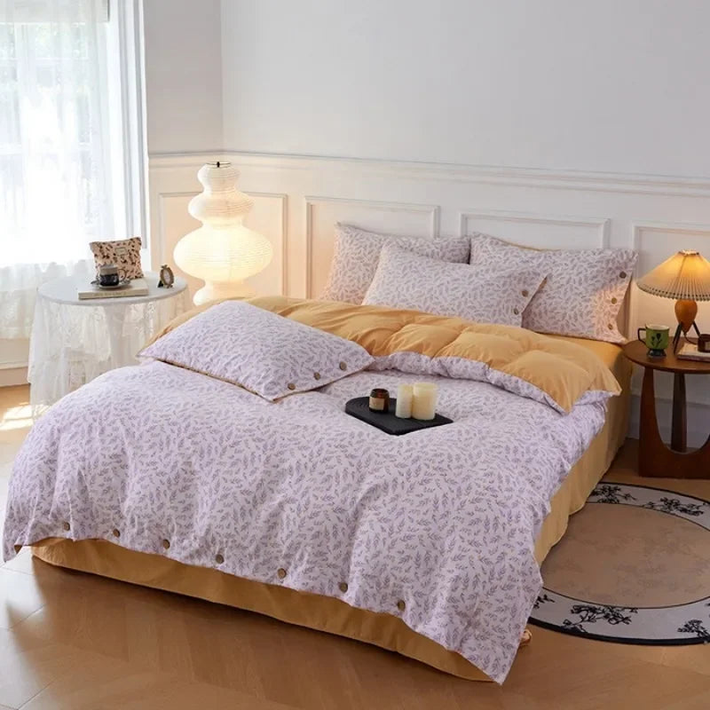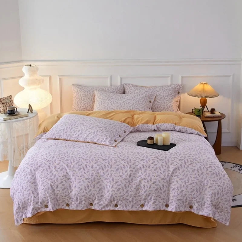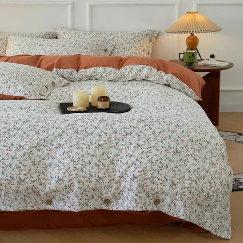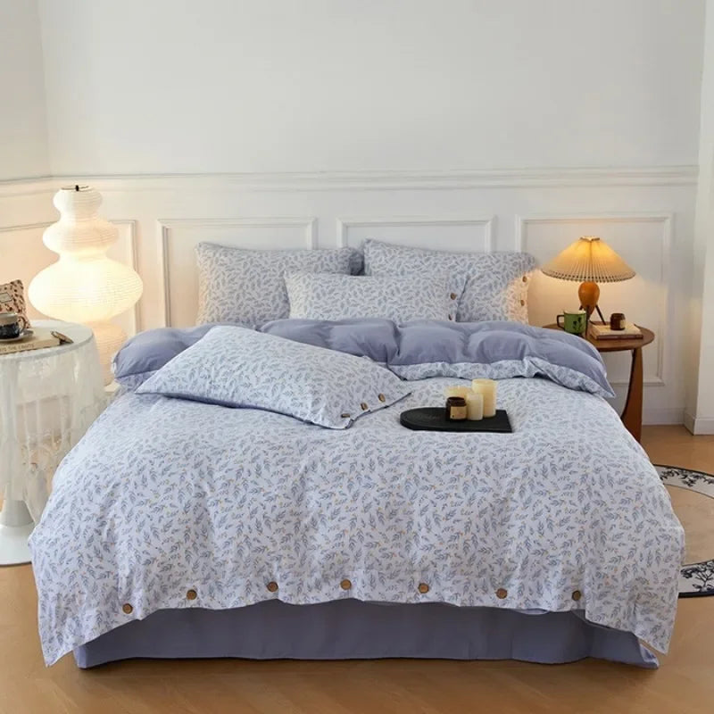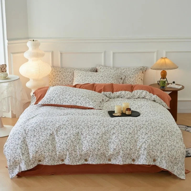 Popxstar new small floral button model pastoral four-piece set non-cotton pure cotton Japanese washed cotton four-piece set
