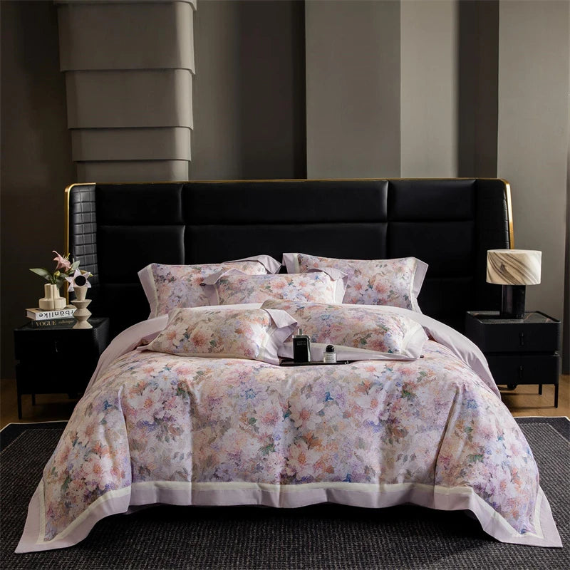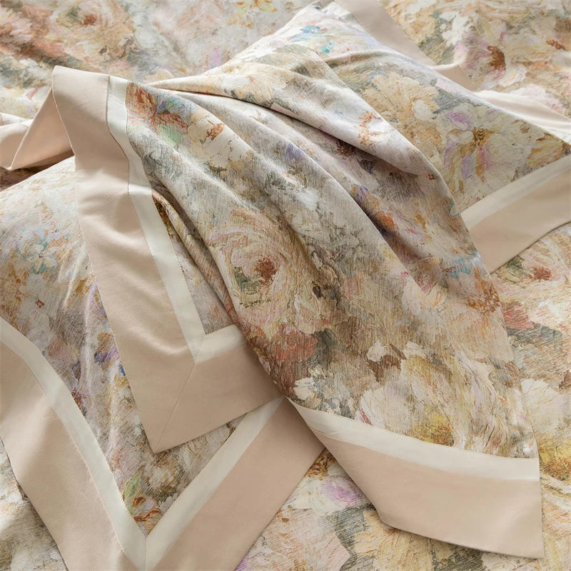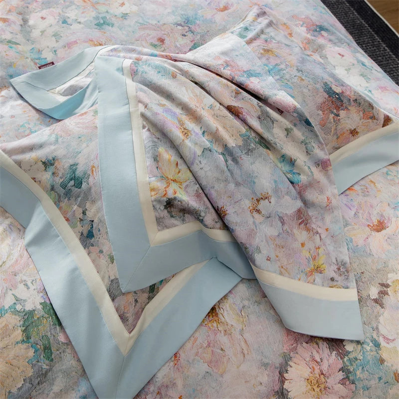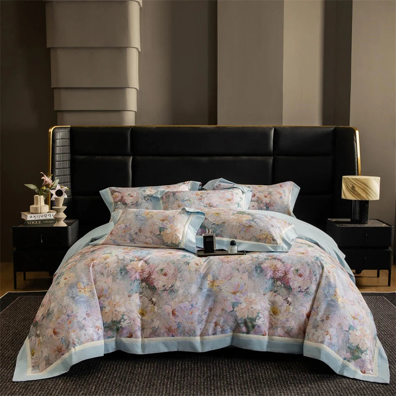 Popxstar Premium 100% Cotton Brushed Bedding Set Flowers Prints Oil Painting Style Duvet Cover Flat/Fitted Bed Sheet Pillowcases 4Pcs