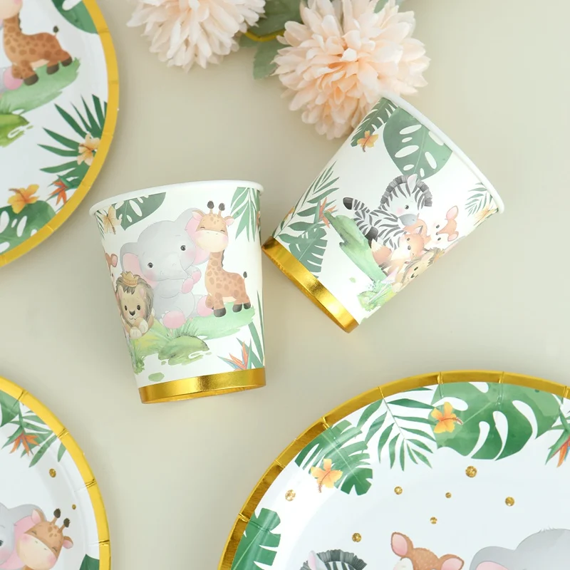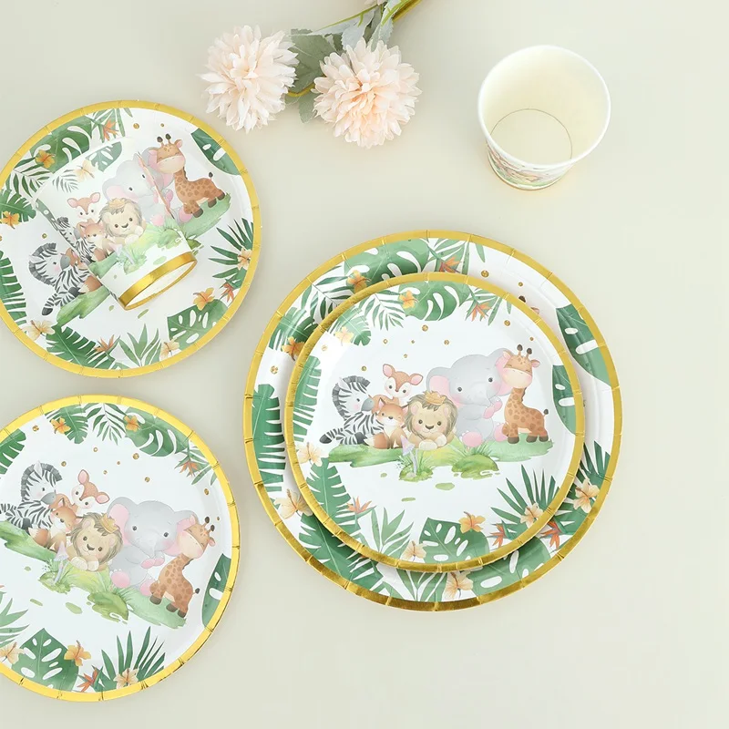 Jungle Animal Tableware Jungle Safari Birthday Party Decor Kids Green Woodland Forest Party Supplies Wild One Birthday Decor
