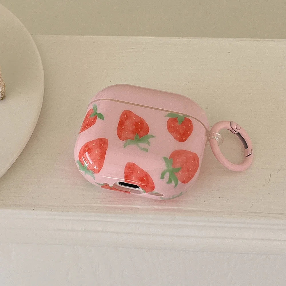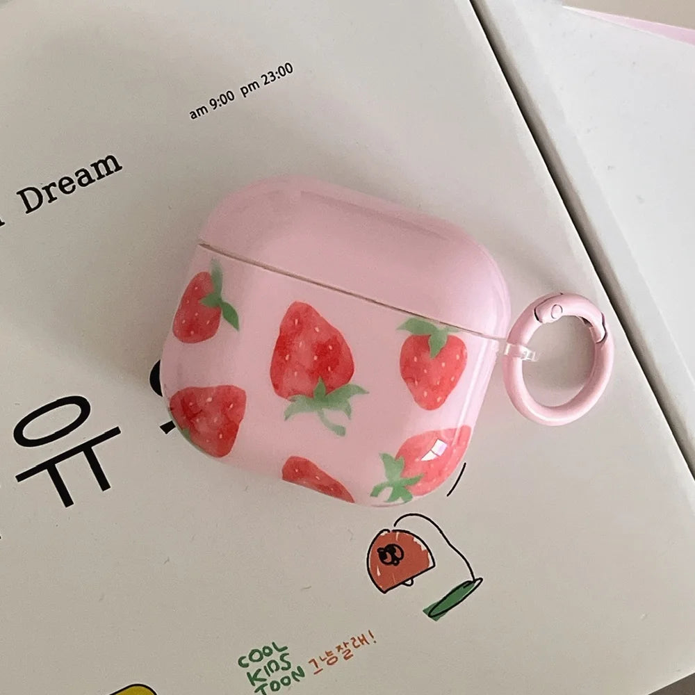 Popxstar Korea Cute Pink Strawberry Pattern Silicone Earphone Case for AirPods Pro 2 AirPods 4 AirPods 1 2 3 Soft Protection Cover Coque