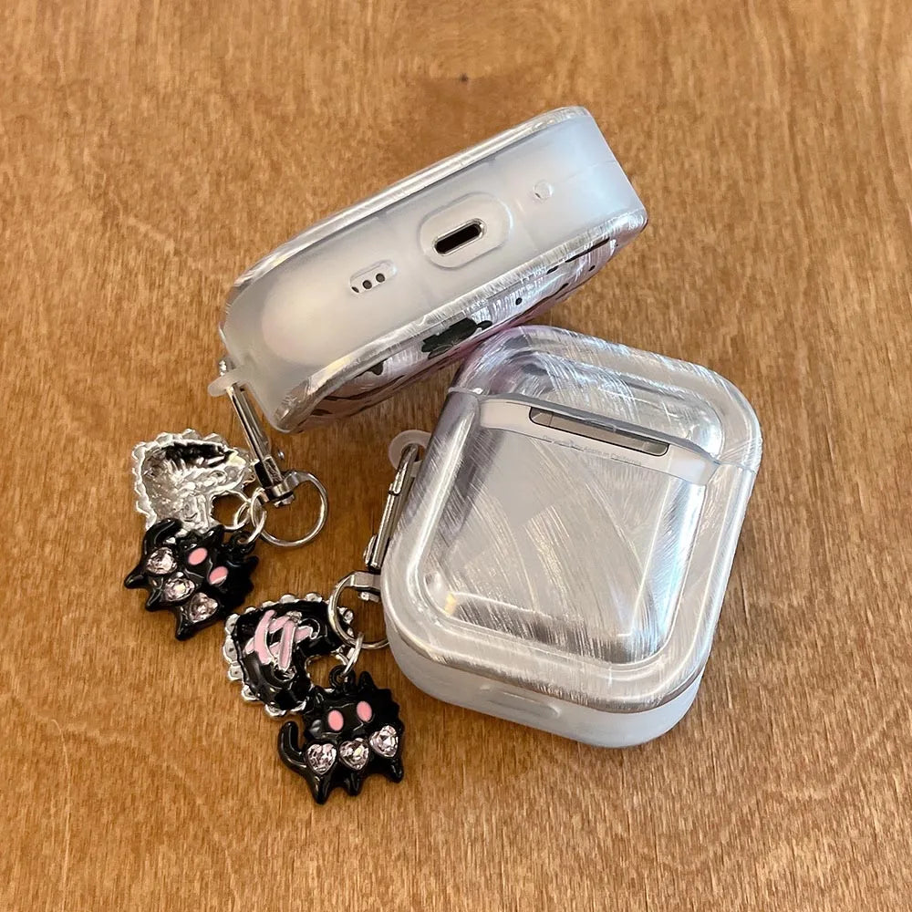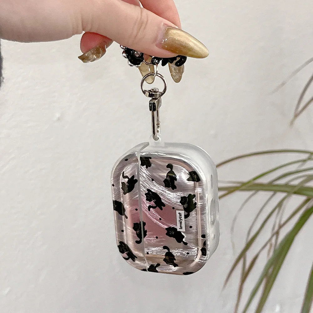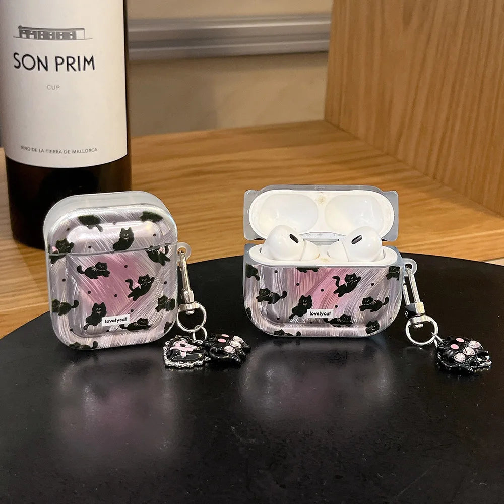 Popxstar Korea Lovely Cartoon Black Cat INS Pendant Soft Silicone Earphone Case For Apple AirPods 1 2 3 4 Pro 2 3nd TPU Protective Cover