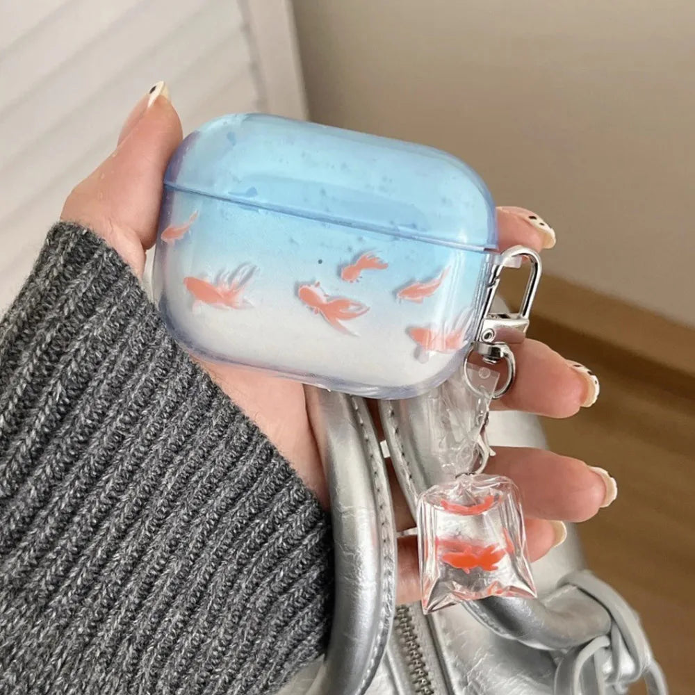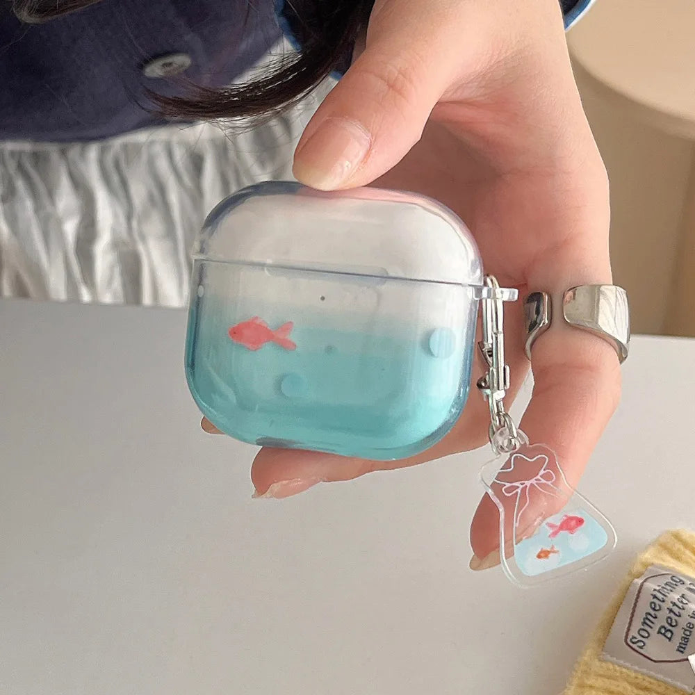 Popxstar Korea lovely transparent gradient goldfish koi soft earphone case for airpods 4 pro 2 3nd protection cover coque cute pendant