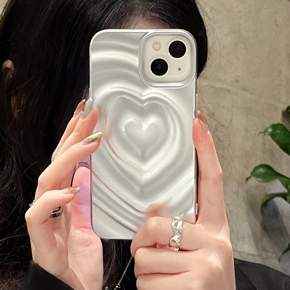 Popxstar Love Heart Matte silver Silicone Shockproof Protection Back Cover For iPhone 15 Pro Max 13 Pro 12 11 14 Fashion Girls Phone Case