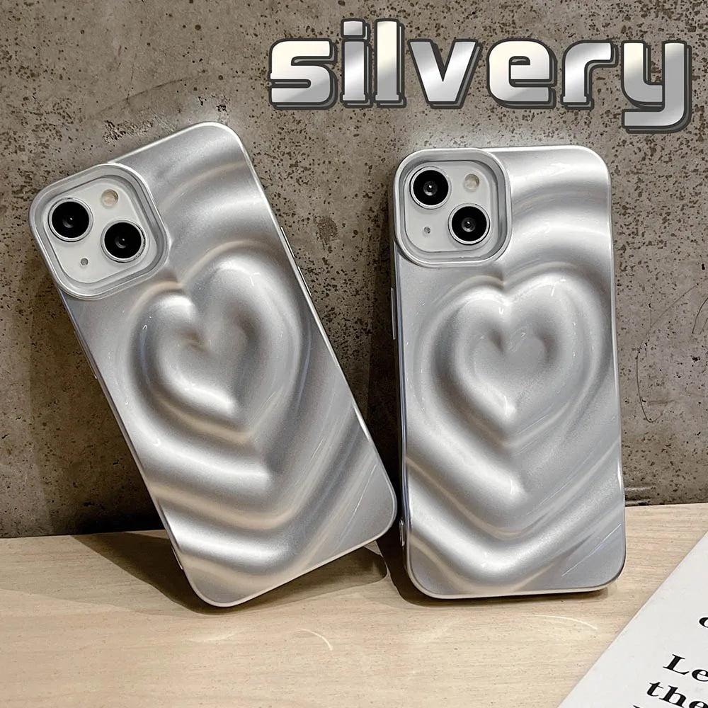 Style: Love Heart Matte silver Silicone Shockproof Protection Back Cover For iPhone 15 Pro Max 13 Pro 12 11 14 Fashion Girls Phone Case
