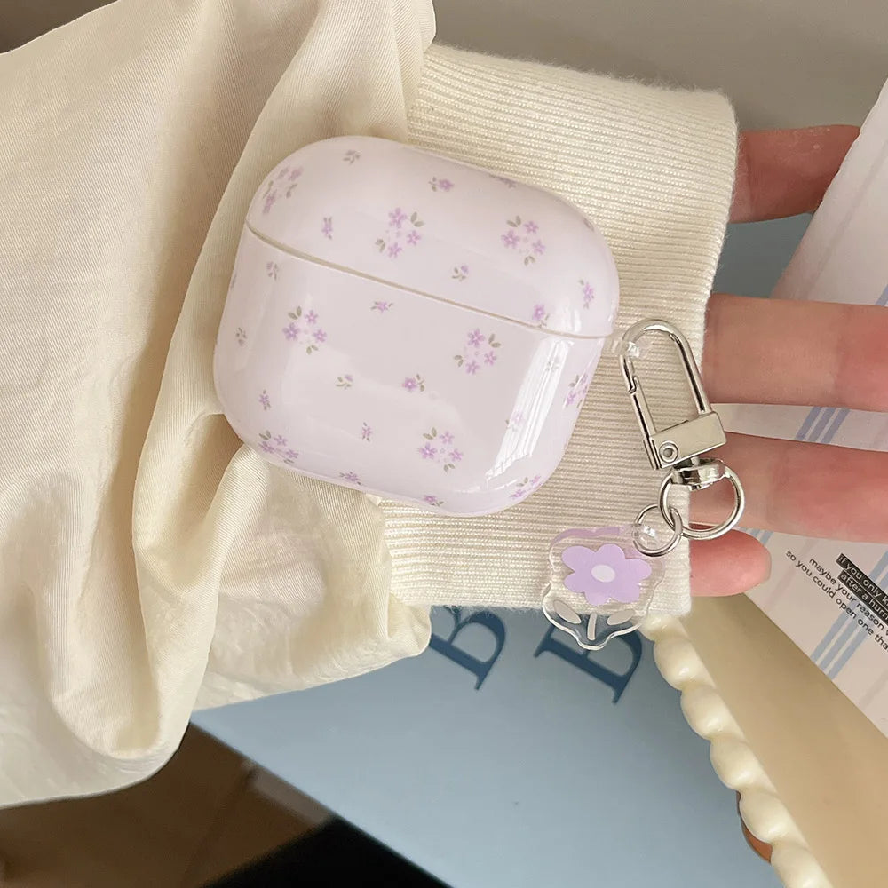 Popxstar  new earphone case for apple airpods pro 2 charging box protection cover purple flower fall prevention keychain for airpods 4 3 2