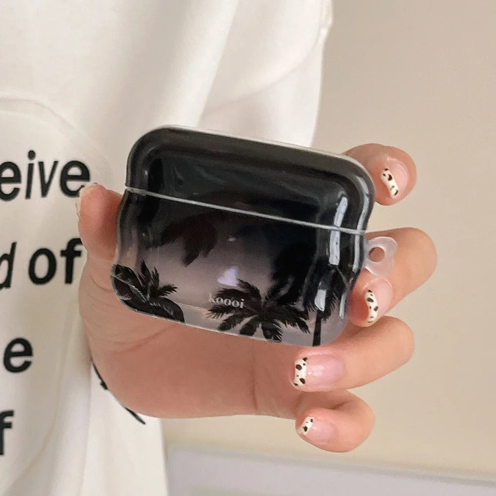 Popxstar Wave Edging Coconut Tree Gradient Transparent Silicone Earphone Case for AirPods Pro 2 3 1 3nd Generation Bluetooth Charging Box