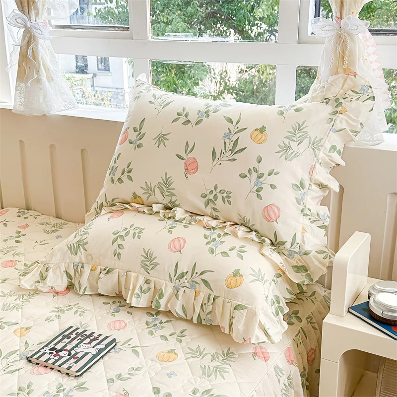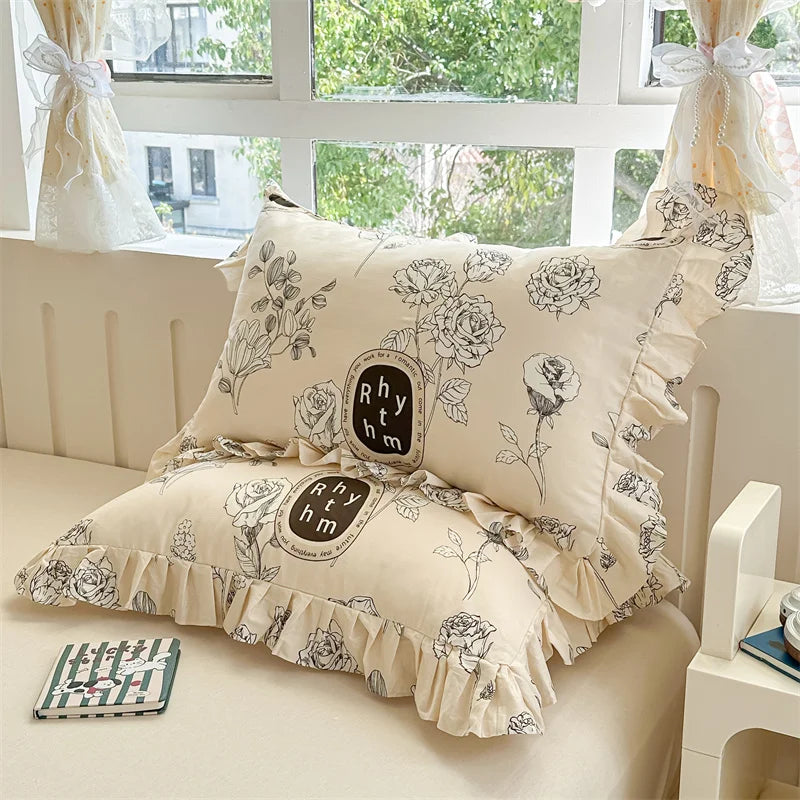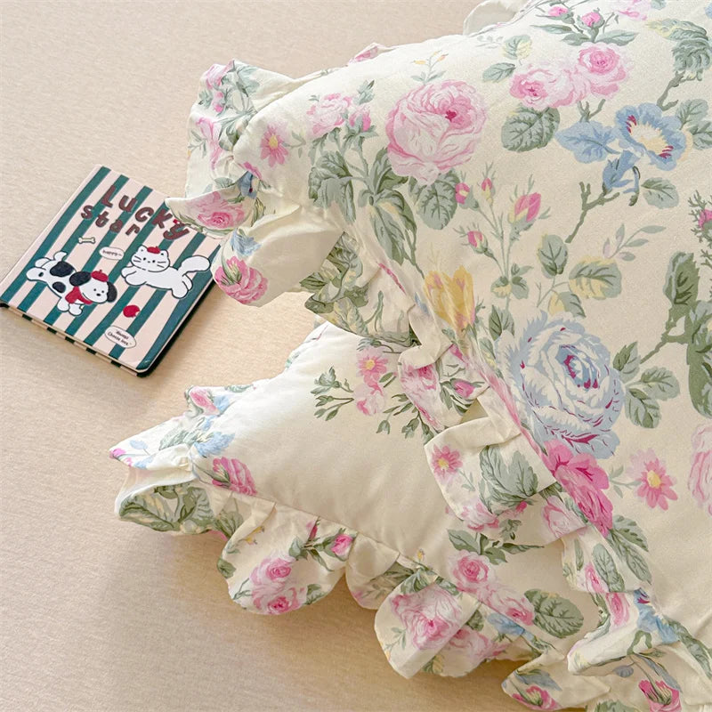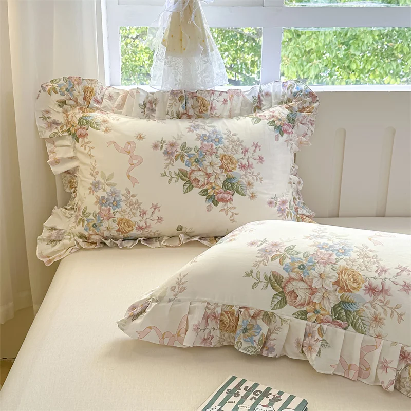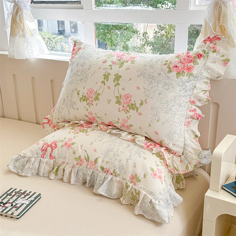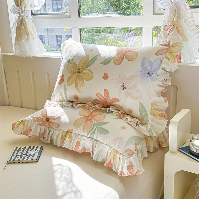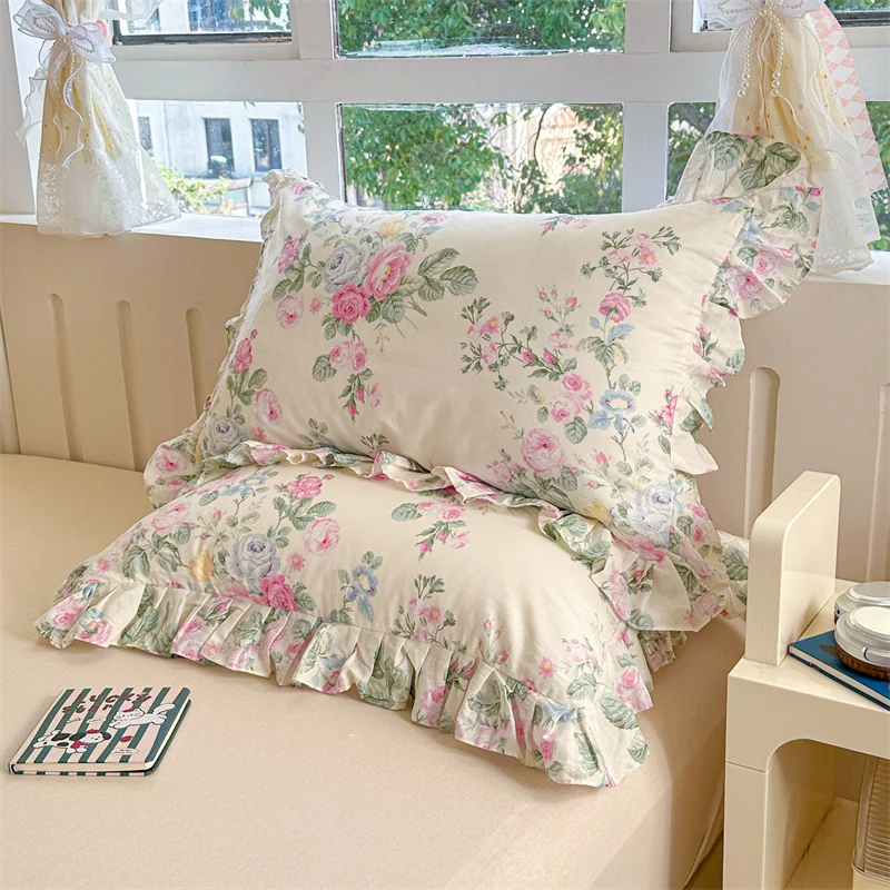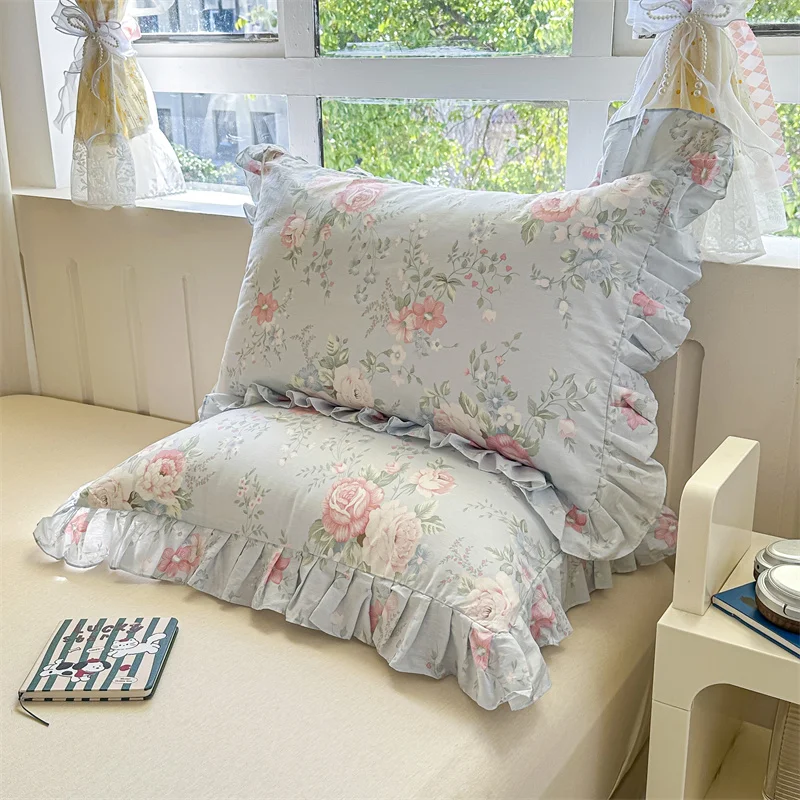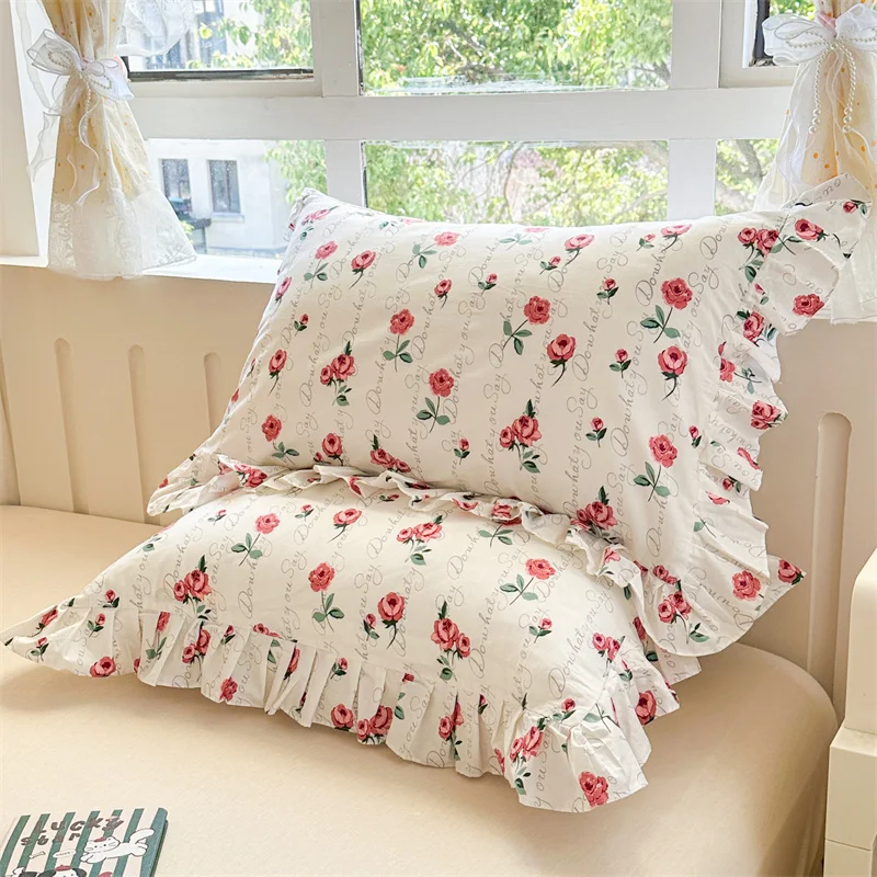 Popxstar  2pcs Flower Prints Ruffles 100% Cotton Pillowcases 48x74cm Sizes Cushion Cover for Bed Floral Style Adults Kids Pillowslip