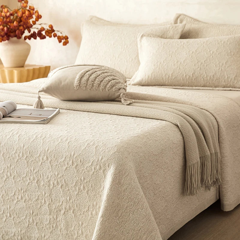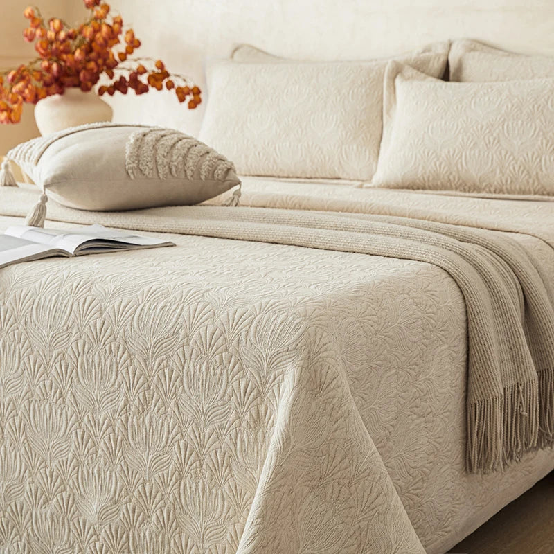 Popxstar 3Pcs Luxury Natural Cotton Linen Soft Comfortable Quilted Bedspread, Bed Cover, Mattress Topper, Bed Sheet, With Pillowcases