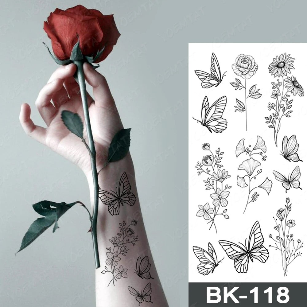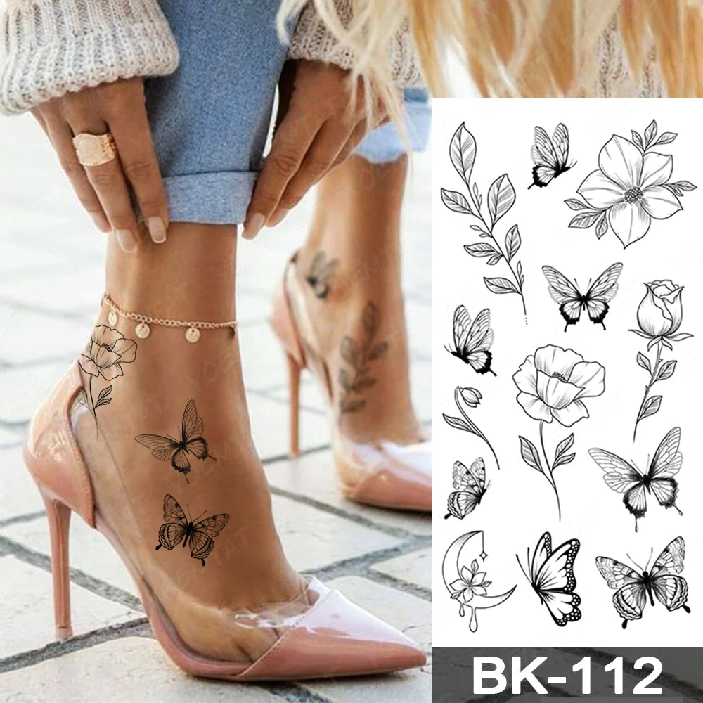 Popxstar  Wholesale Waterproof Temporary Tattoo Sticker Flash Tattoos Lip Print Butterfly Flowers Body Art Arm Fake Sleeve Tatoo