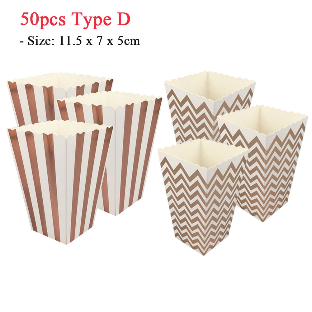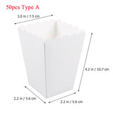 50pcs Paper Candy Cartons Popcorn Box Party Supplies White Popcorn Boxes Pop Corn Snacks Food Tub Wedding Kids Birthday Supplies