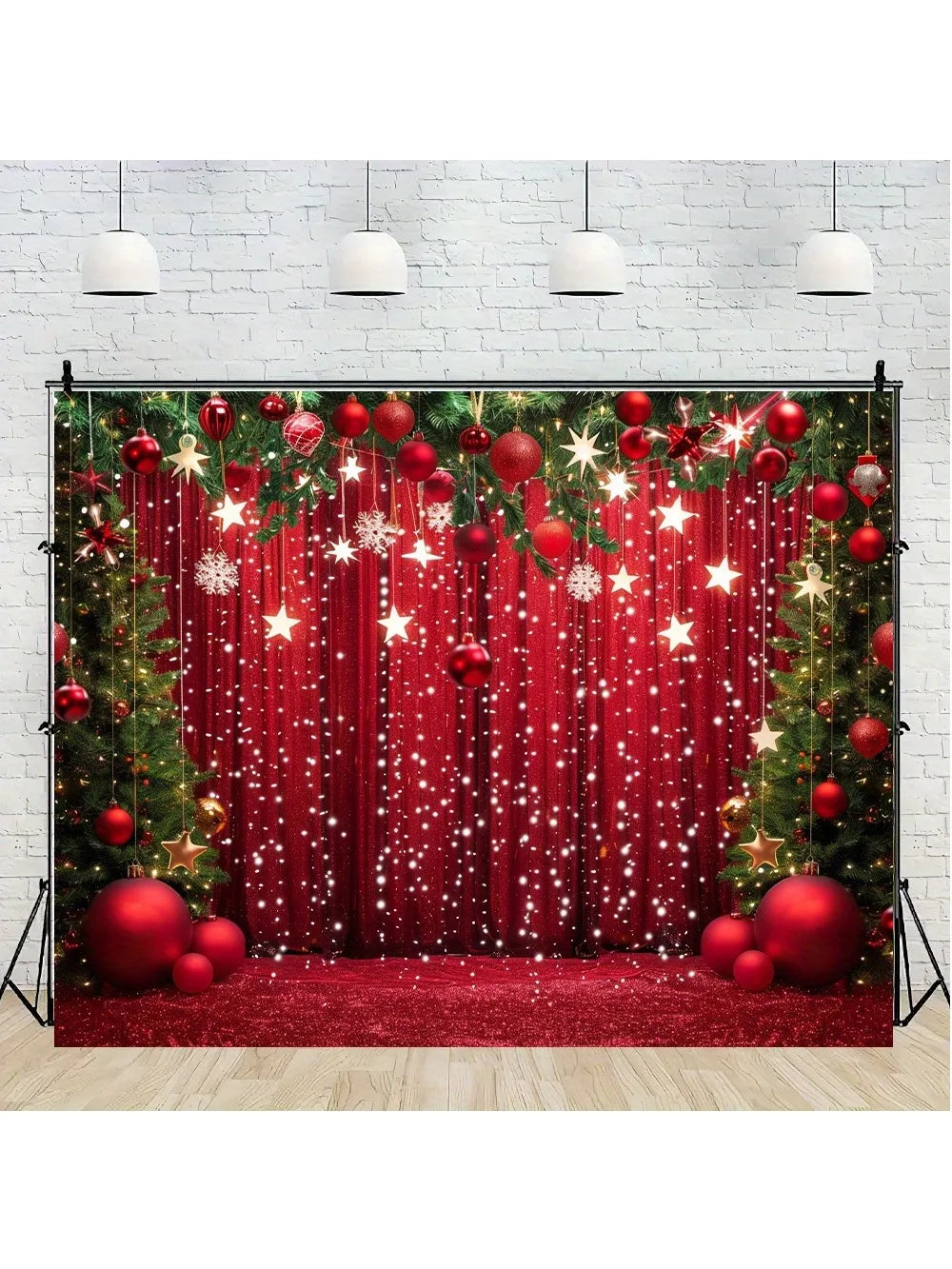 Popxstar Merry Christmas and Happy New Year Photo Background - Red Snowflakes and Christmas Ball Theme, Suitable for Family Gatherings