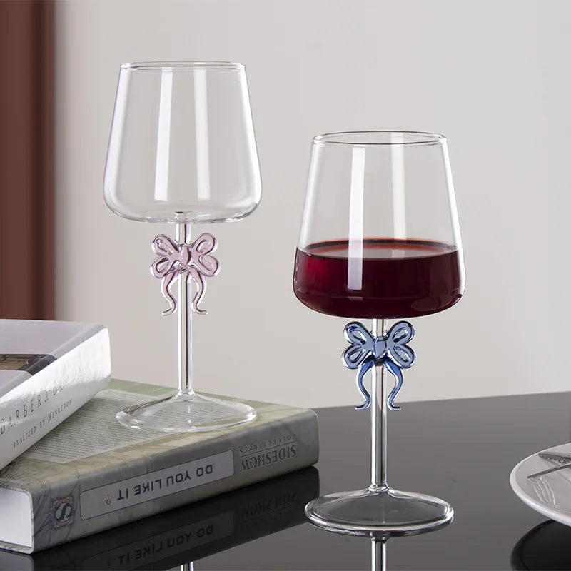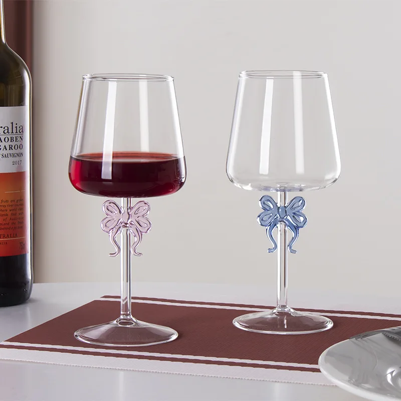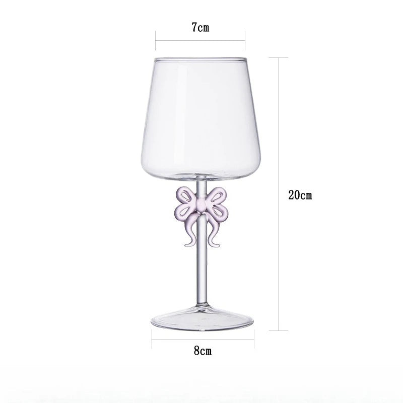 Popxstar 420ML Creative Pink Bow Cup Glass Desktop Decoration Home Christmas Party Drinkware Glass Cup Champagne Handmade Wine Glass Gift