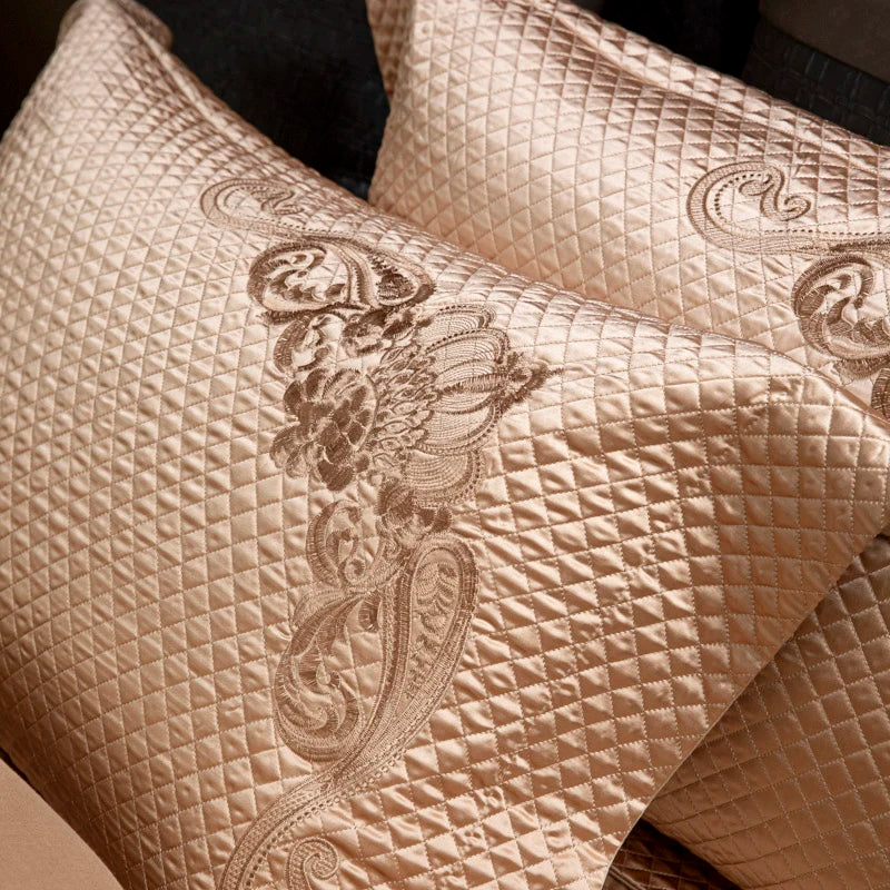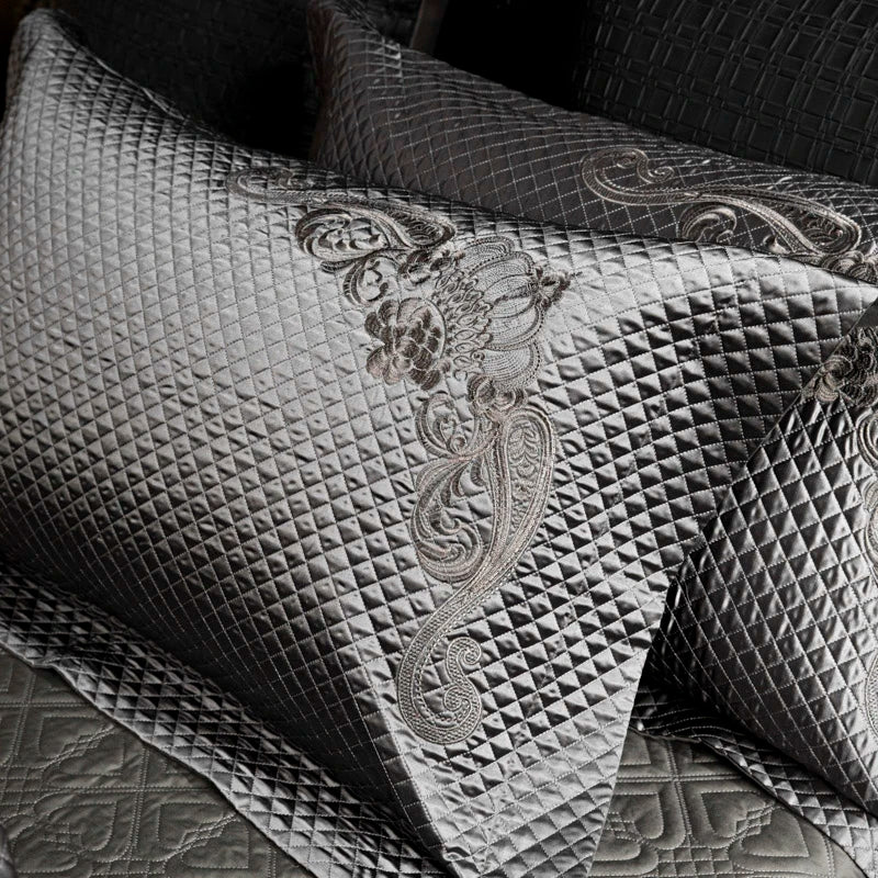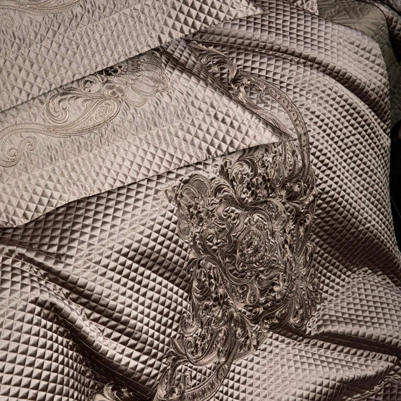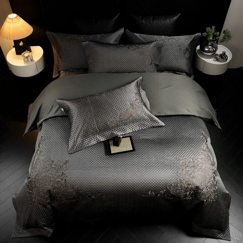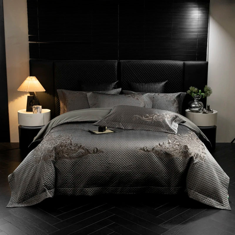 Popxstar 4Pcs European Luxury Brocade Silk Cotton Embroidery Bedding Set Soft Silky Duvet Cover Set With Quilted Bedspread Pillowcases