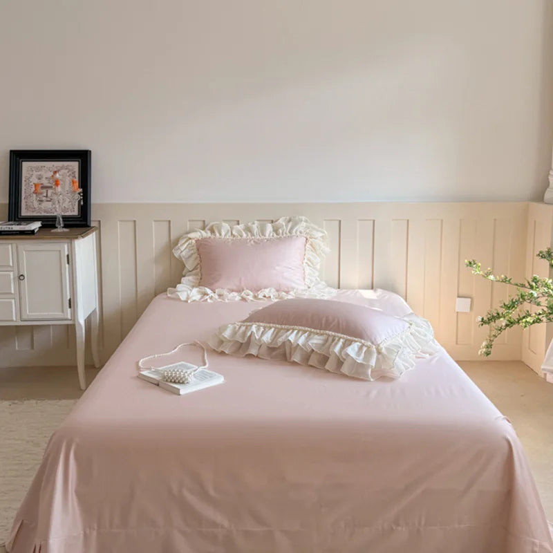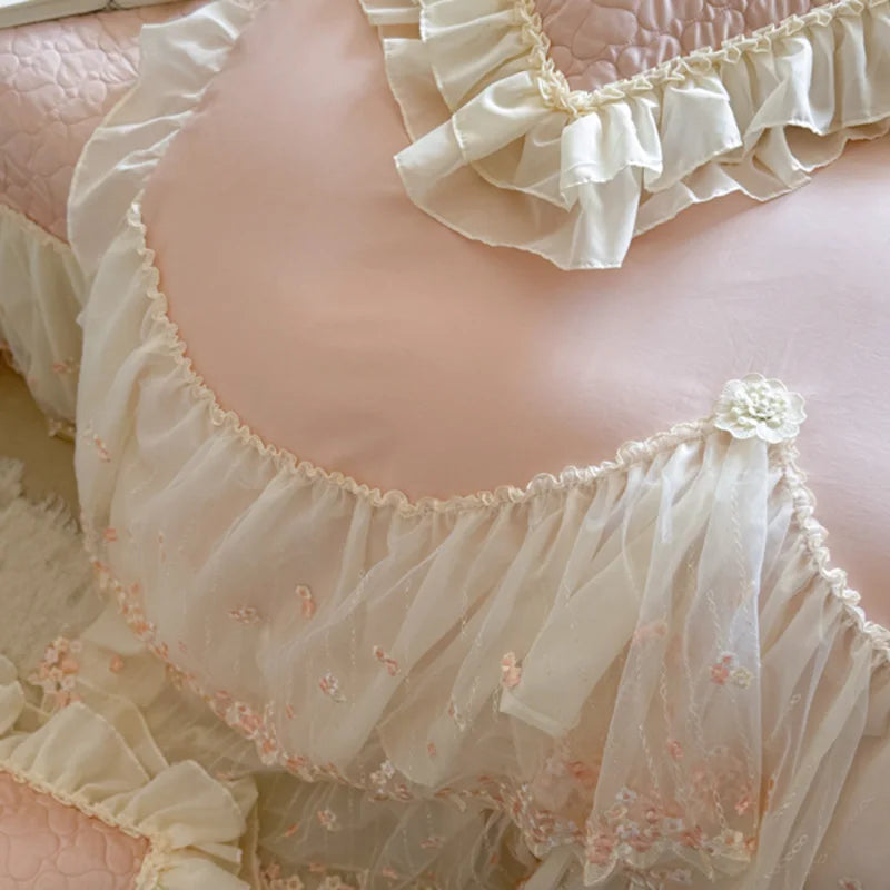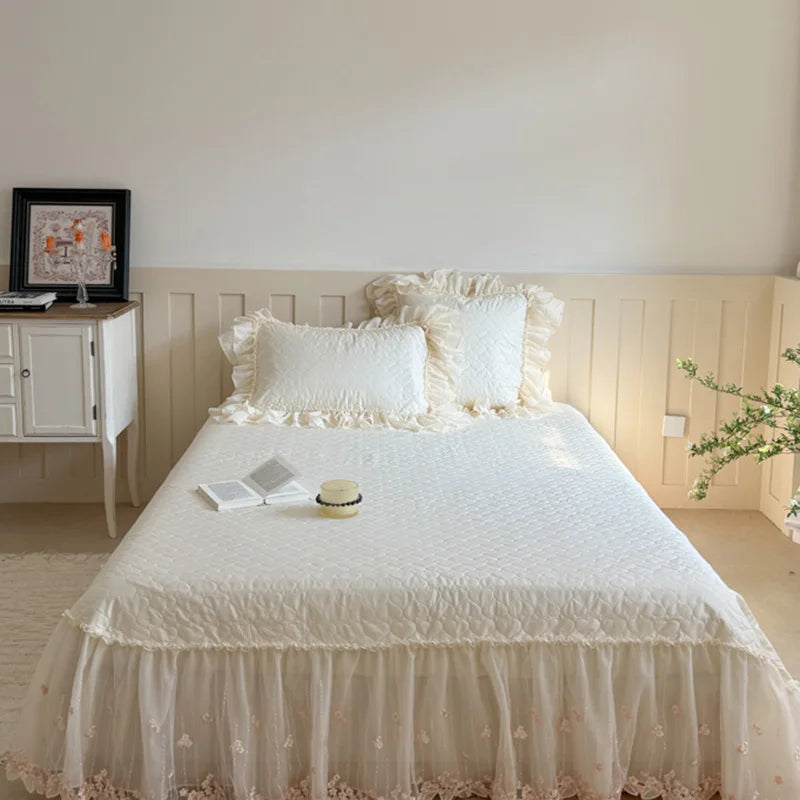 Popxstar 4Pcs Romantic Double Layer Lace Princess Wedding Bedding Set 100% Cotton Duvet Cover Bed Sheet Or Quilted Bedspread Pillowcases