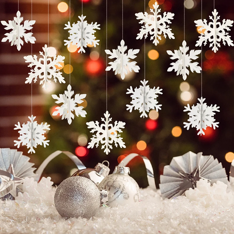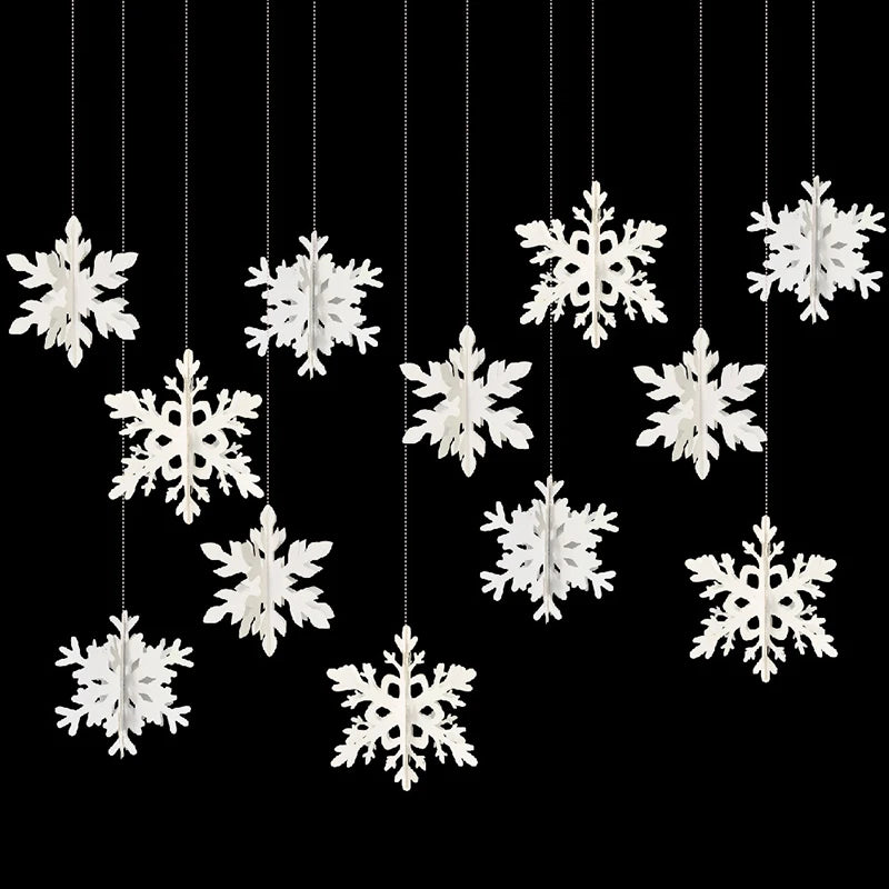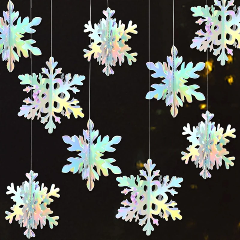 Popxstar 6pcs 3D white/laser snowflake hanging decorations, Christmas snowflakes, winter wonderland, New Year's party home decorations