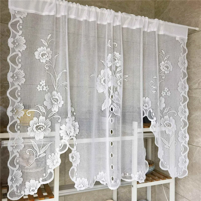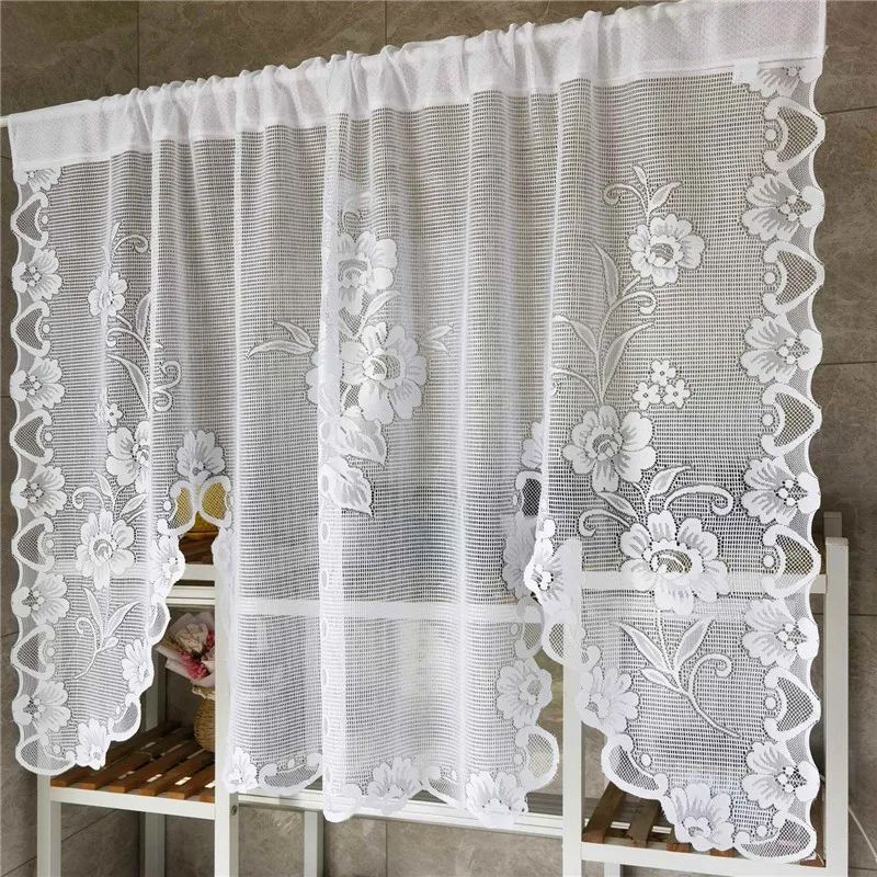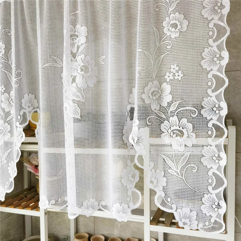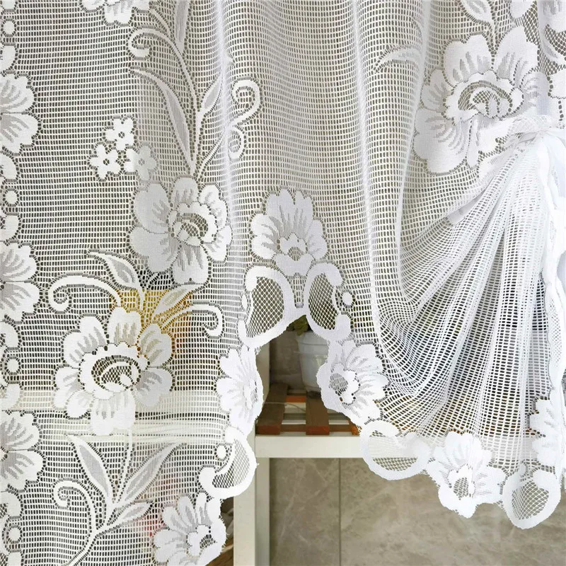 Popxstar American Pastoral White Lace Balloon Curtain Lifting Tie-Up Roman Tulle Curtain Valance For Room Kitchen Door Partition Decor