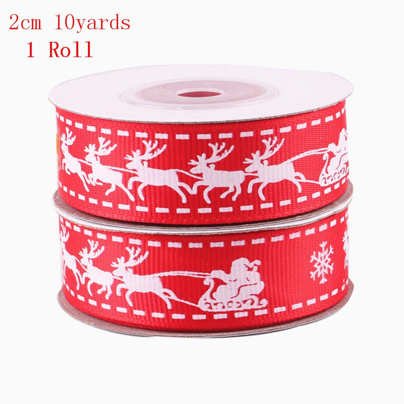 Popxstar Christmas Polyester Ribbon Christmas Bronzing Printed New Year Gifts Wrapping Ribbon for Christmas Decoration DIY Sewing Fabric