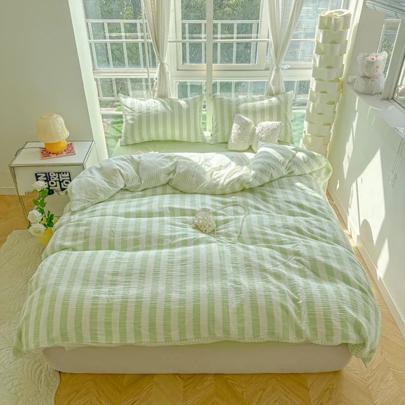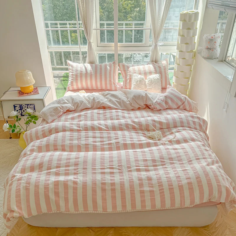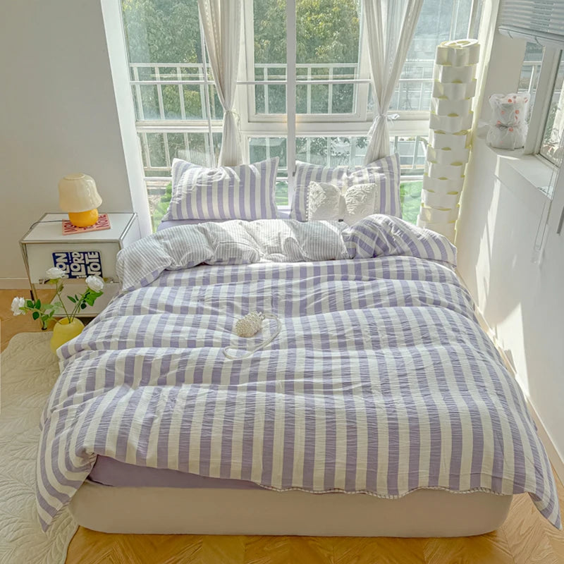 Popxstar Nordic Bedding Set Ins Popular Striped Duvet Cover Set Bed Sheets Set Single Twin Full Queen Size Skin-Friendly Soft Bedding