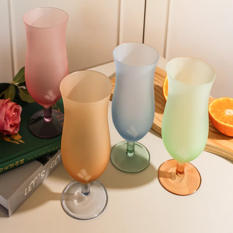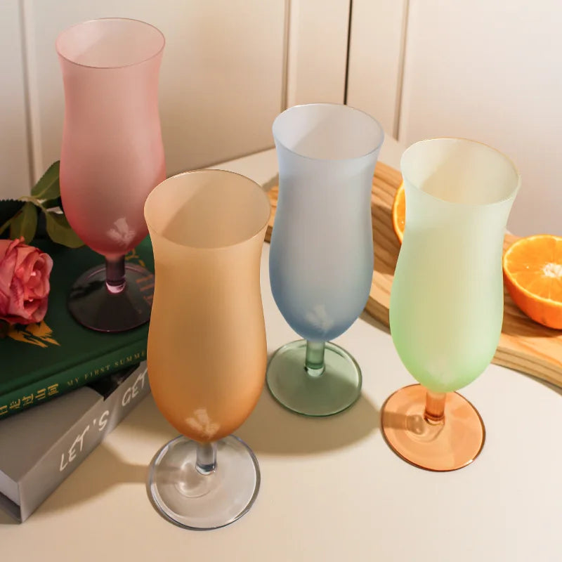 Popxstar Pastel Frosted Glass Goblets Drinkware Home High-footed Cups Home Kitchen Party Bars Cocktail Glasses Beverage Juice Decor Gifts