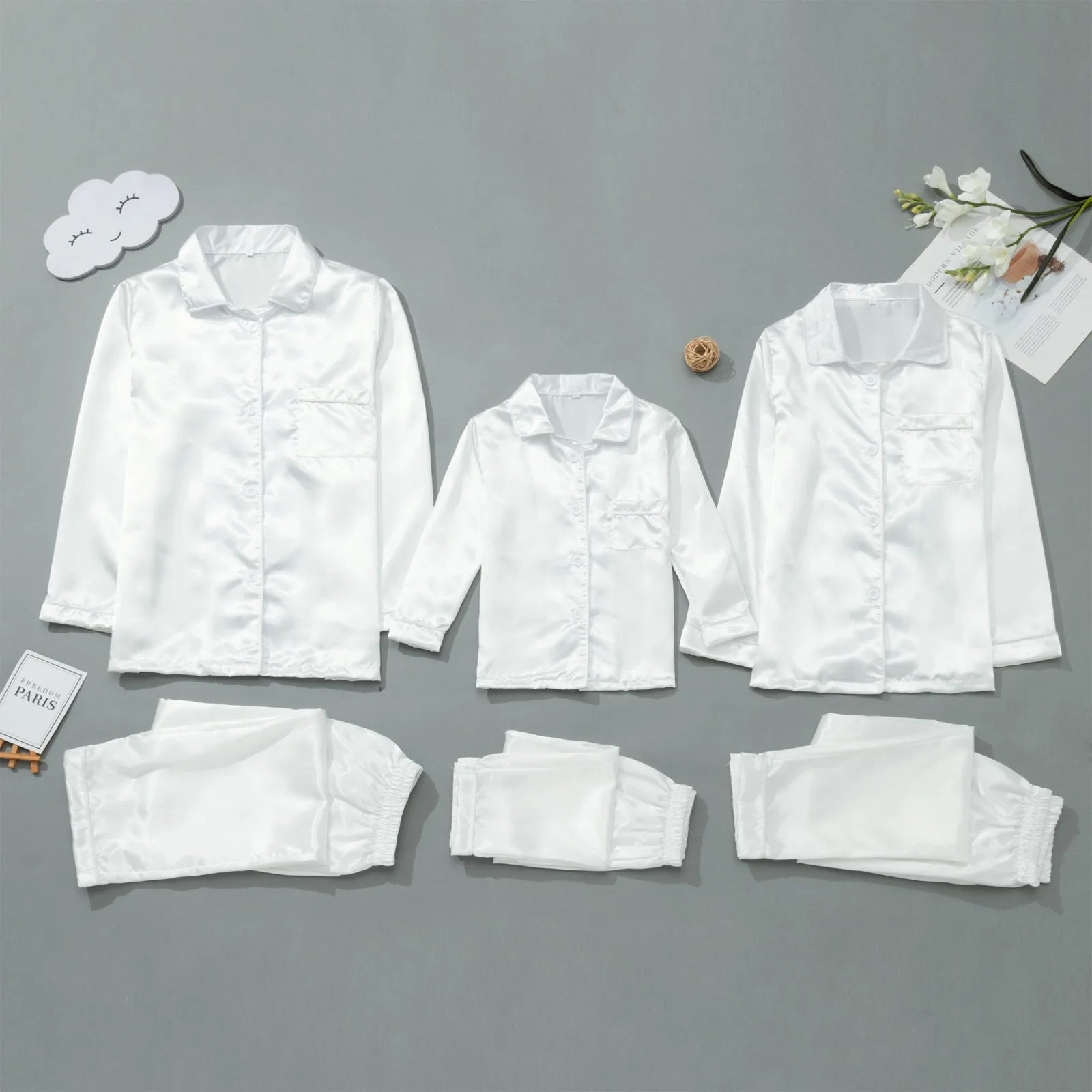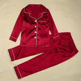 Satin Silk Family Matching Pajama Suits Christmas Sleepwear 2 Piece Set Solid Color Button Lapel Long Sleeve Shirts+Casual Pants